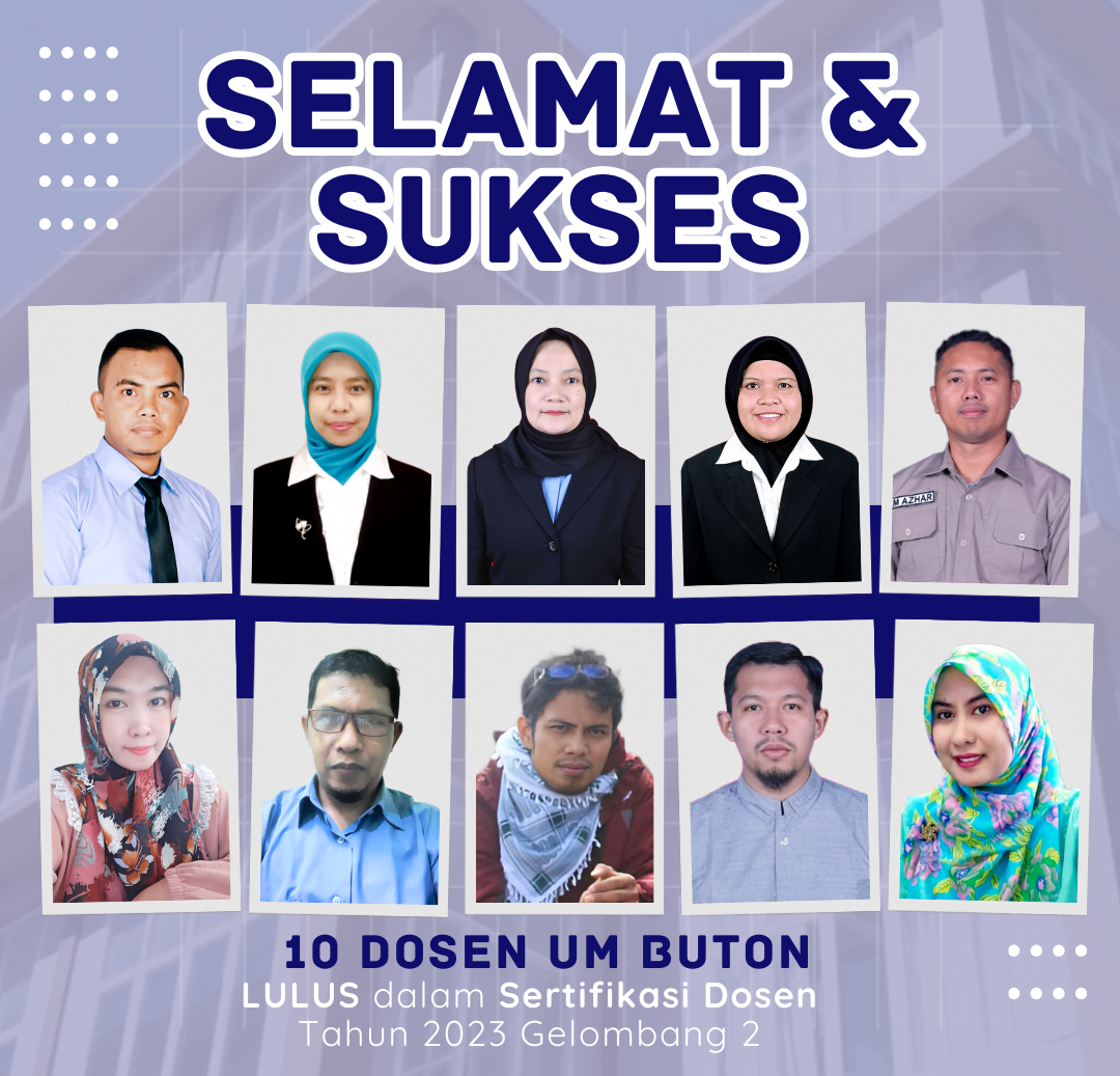Universitas Muhammadiyah Buton (UM Buton) merayakan pencapaian luar biasa, dengan 10 dosen terpilih yang berhasil melewati uji sertifikasi dosen dalam program prestisius tahun 2023. Pencapaian ini tidak hanya mencerminkan komitmen UM Buton dalam meningkatkan mutu pendidikan tinggi, tetapi juga menandai sebuah tonggak emas dalam karier akademik para penerima prestasi ini.