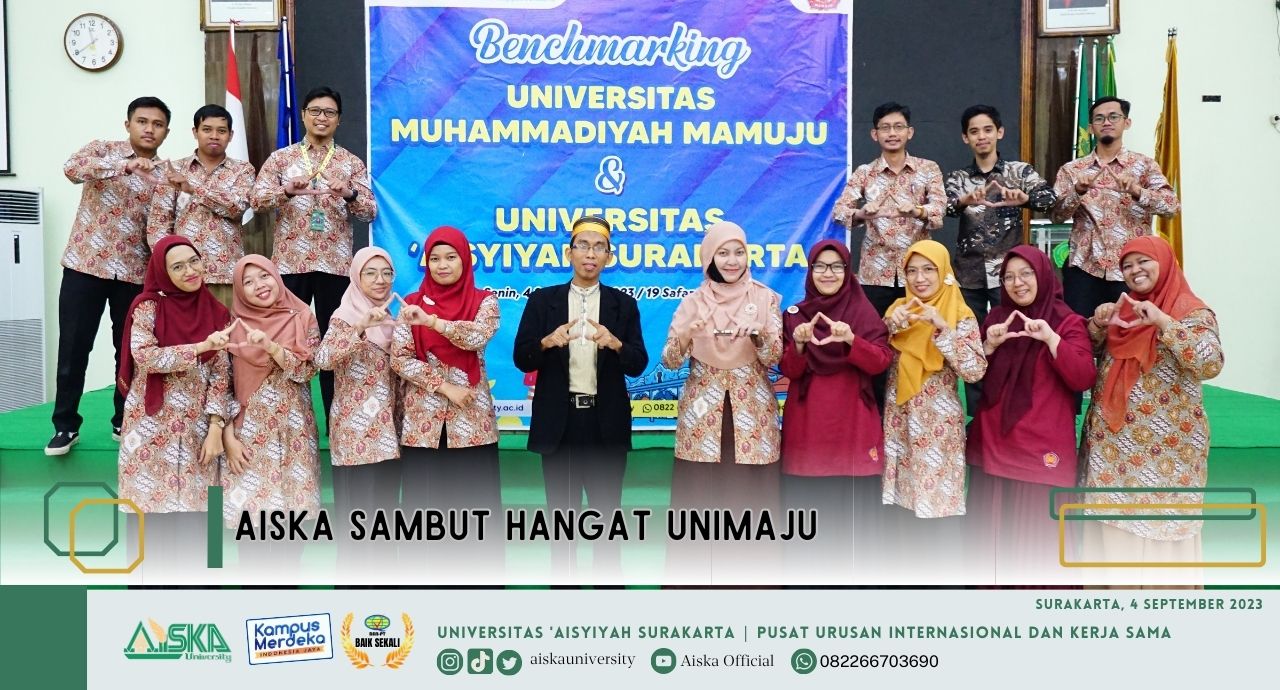 Universitas ‘Aisyiyah Surakarta (AISKA) menyambut hangat kedatangan Universitas Muhammadiyah Mamuju (UNIMAJU). Kunjungan berlangsung pada Senin (04/09) lalu, bertempat di Gedung Siti Baroroh Baried, Komplek Kampus 1 AISKA, di Jl. Ki Hajar Dewantara No. 10, Kentingan, Jebres, Surakarta.