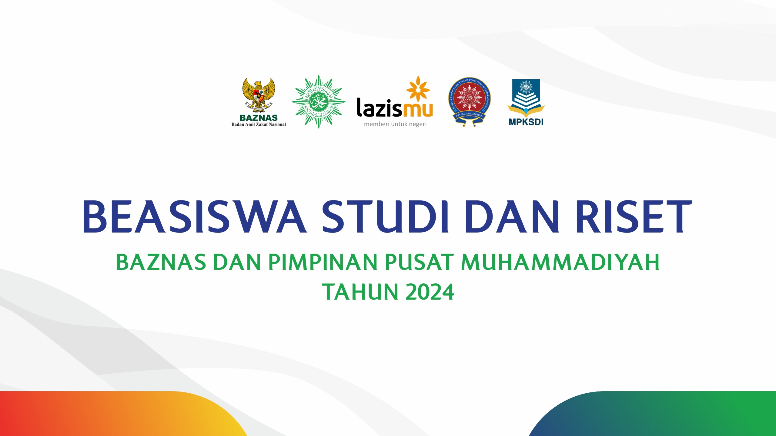Pimpinan Pusat Muhammadiyah melalui Majelis Diktilitbang PPM bekerja sama dengan Badan Amil Zakat Nasional Republik Indonesia (Baznas RI) menyediakan program beasiswa untuk kader Muhammadiyah. Program ini resmi diluncurkan melalui Kick Off dan Sosialisasi Beasiswa Studi dan Riset oleh Baznas dan PP Muhammadiyah, secara daring, Senin (7/1/2024).