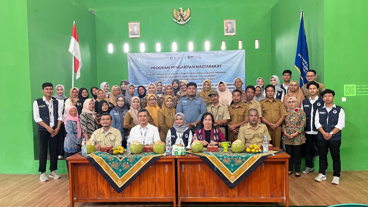 Badan Eksekutif Mahasiswa Fakultas Ilmu Kesehatan (BEM FIKES) Universitas Muhammadiyah Purwokerto (UMP) terus menunjukkan kiprahnya dalam pemberdayaan masyarakat melalui program Penguatan Kapasitas Organisasi Mahasiswa (PPK Ormawa). Program bertajuk Desa Sehat melalui SAKTI (Solusi Atasi Hiperglikemia melalui Gluco Care) ini menjadi wujud nyata kontribusi mahasiswa dalam meningkatkan kualitas hidup warga Desa Kemutug Kidul, Kecamatan Baturraden, Kabupaten Banyumas.