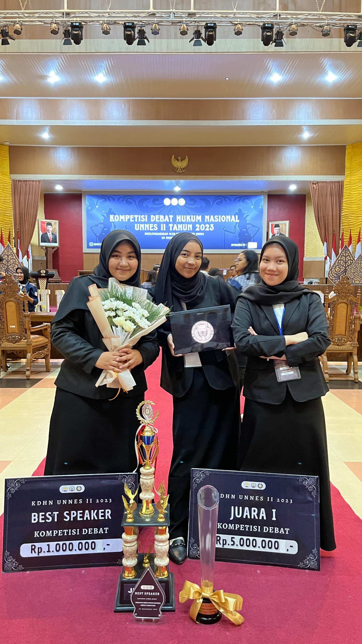Fakultas Hukum Universitas Muhammadiyah Yogyakarta (FH UMY) yang diwakili oleh tiga mahasiswa bernama Ayi Leoni Putri, Norradyah, dan Inggrid Janainah Salsabillah berhasil didapuk menjadi juara pertama dalam kompetisi debat nasional pada Minggu (26/11) yang diselenggarakan oleh Universitas Negeri Semarang (UNNES). Kompetisi tahunan yang bernama Kompetisi Debat Hukum Nasional (KDHN) ini menjadi penyelenggaraan yang kedua, dan UMY pun tidak hanya menjadi juara pertama namun Ayi Leoni Putri juga berhasil mendapatkan predikat Best Speaker. Kedua prestasi tersebut tidak lepas dari latar belakang ketiga mahasiswa yang sudah memiliki minat dalam debat, dan semakin diasah melalui komunitas debat di tingkat fakultas.