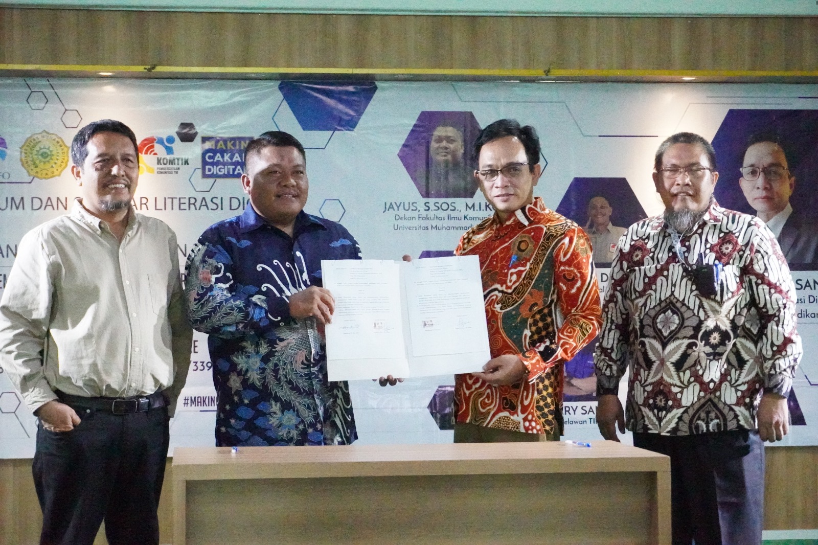Diawali penandatanganan Memorandum of Agreement (MoA) antara Dirjen Aptika Kominfo RI dengan Rektor Umri serta penandatanganan Agreement Implementation (AI) Dirjen Aptika Kominfo RI dengan Fikom Umri yang dilanjutkan Kuliah Umum Literasi Digital dengan narasumber Direktur Program Literasi Digital Sektor Pendidikayn Kominfo RI, Bambang Tri Santoso.