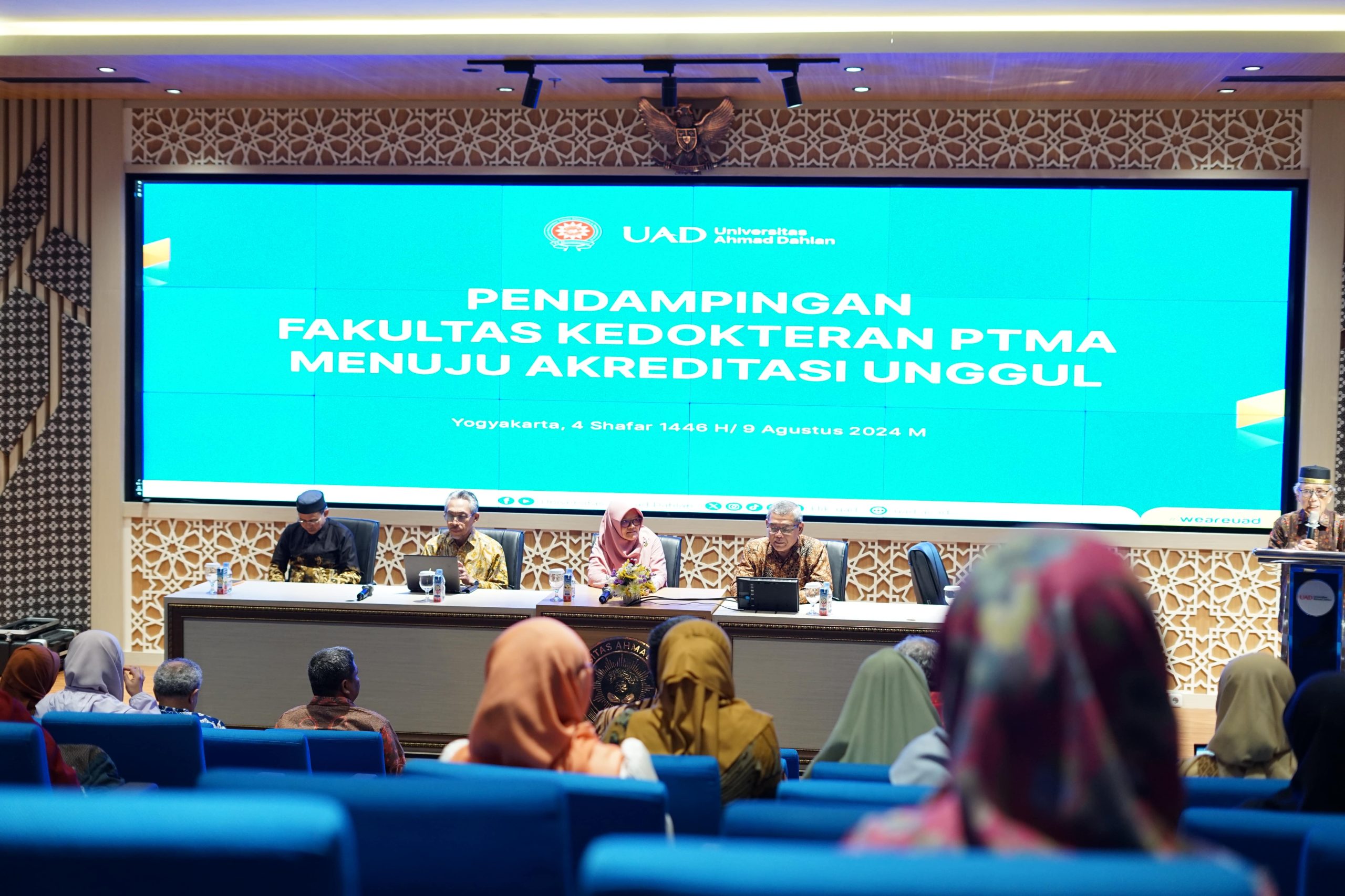 Majelis Diktilitbang PP Muhammadiyah mengadakan pendampingan Fakultas Kedokteran Perguruan Tinggi Muhammadiyah ‘Aisyiyah (PTMA) Menuju Akreditasi Unggul, bertempat di Universitas Ahmad Dahlan (UAD), Jumat, (09/08/2024).
