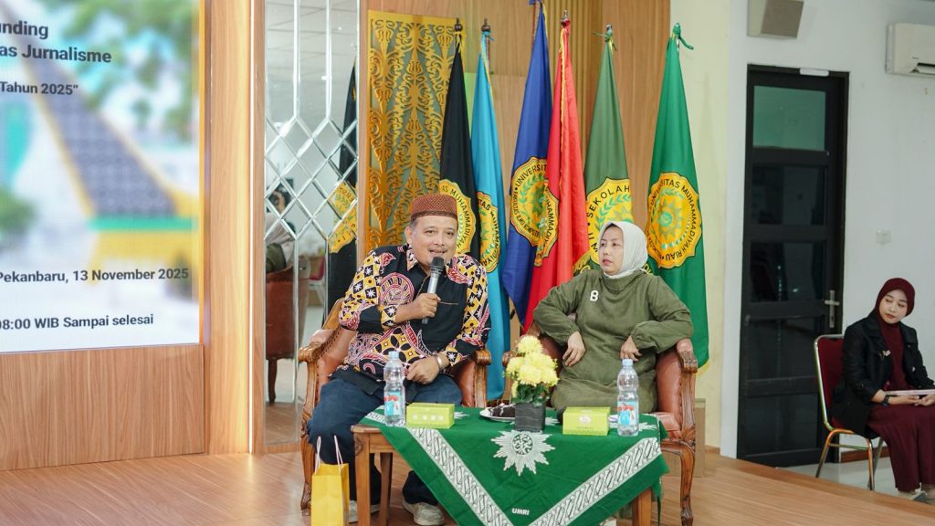 Fakultas Ilmu Komunikasi (FIKOM) Universitas Muhammadiyah Riau (UMRI) menyoroti persoalan rendahnya kompetensi jurnalis di Indonesia melalui kegiatan Diseminasi Hasil Penelitian bertema “Analisis Peran Masyarakat dan Potensi Crowdfunding dalam Meningkatkan Kompetensi Wartawan dan Kualitas Jurnalisme”, Kamis (13/11/2025). Acara yang digelar di Pekanbaru ini dibuka oleh Dekan FIKOM, Jayus, dan dihadiri pimpinan prodi, dosen, serta ratusan mahasiswa.
