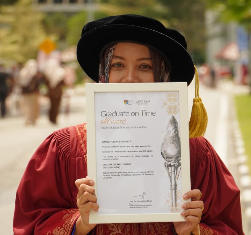 Ratna resmi dikukuhkan sebagai lulusan doktor pada 22 November 2025 di Dewan Canselor Tun Abdul Razak (DECTAR), UKM. Ia menyelesaikan program PhD hanya dalam enam semester dan meraih status Graduate on Time (GOT), sebuah capaian yang menandai efektivitas riset dan kedisiplinan akademik selama masa studi.