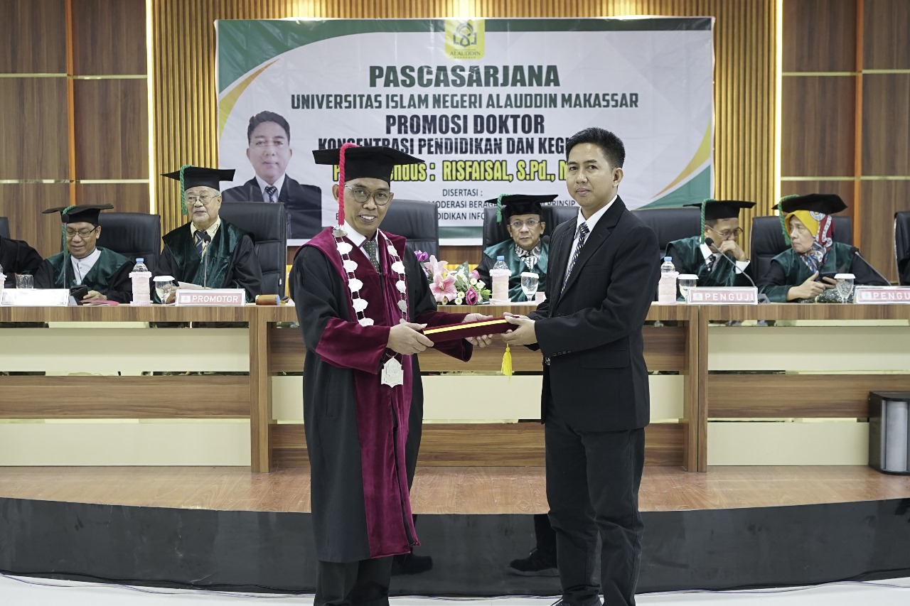 Sidang promosi doktor yang digelar pada Senin, 11 Agustus 2025, di Aula Pascasarjana UIN Alauddin ini dipimpin langsung oleh Wakil Direktur Program Pascasarjana, Prof. Dr. Hasyim Haddade, S.Ag., M.Ag.. Dengan capaian Indeks Prestasi Kumulatif (IPK) 3,92, Risfaisal menuntaskan studinya hanya dalam waktu 2 tahun 5 bulan. Ia tercatat sebagai doktor ke-1.476 di kampus tersebut.