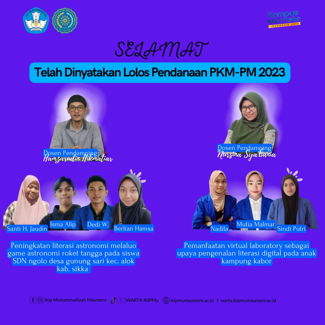 Maumere, 2 Juli 2023 – Prestasi gemilang terus menghiasi IKIP Muhammadiah Maumere dalam bidang pengabdian kepada masyarakat hal ini dibuktikan melalui Program Kreativitas Mahasiswa-Pengabdian Masyarakat (PKM-PM) tahun 2023, dua kelompok dari IKIPMu berhasil meraih pendanaan dari BELMAWA dan siap melaksanakan proyek pengabdian mereka dengan tekad yang tinggi.