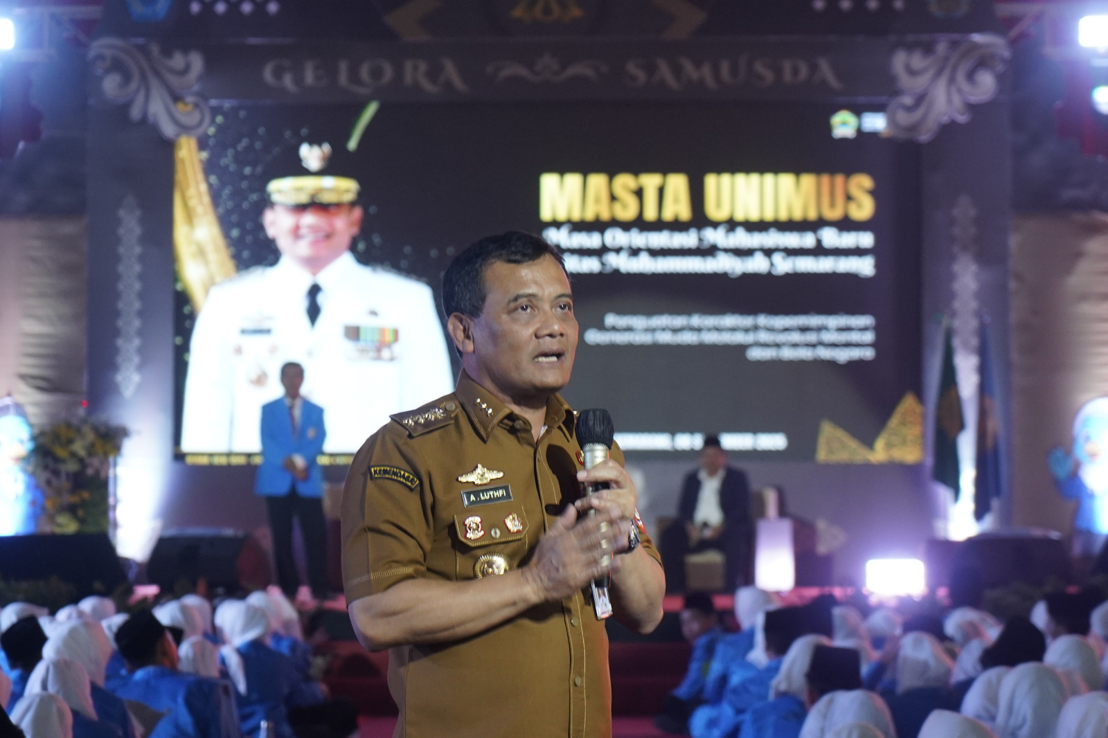 Ribuan mahasiswa baru Universitas Muhammadiyah Semarang (Unimus) mengikuti kuliah umum bersama Gubernur Jawa Tengah, Ahmad Luthfi, dalam rangkaian Masa Ta’aruf (Masta) Tahun Akademik 2025/2026. Acara yang digelar di Gedung Serba Guna (GSG) Unimus pada Senin (8/9) ini menjadi momen berharga sekaligus inspiratif bagi mahasiswa baru.