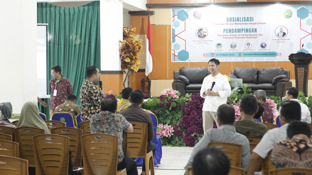 “Apa yang menyebabkan naskah publikasi ditolak oleh editor jurnal?”. Begitu pemantik Ibrahim Fatwa Wijaya saat mengisi materi “Optimalisasi Publikasi Jurnal” dihadapan dosen Universitas Muhammadiyah Buton (UMB), Rabu (21/03/2024). Ibrahim melanjutkan bahwa sebanyak 50 persen paper akan ditolak oleh editor dikarenakan tidak adanya novelty atau kebaruan dan kontribusi yang tercantum dalam artikel jurnal. “Kalau tidak ada novelty, maka akan sulit untuk menemukan kontribusi,” paparnya.