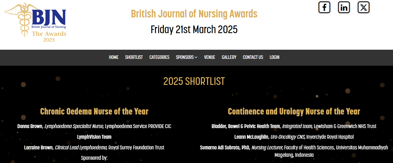 Dengan bangga, Universitas Muhammadiyah Magelang (UNIMMA) kembali menunjukkan prestasinya di arena internasional. Ns. Sumarno Adi Subrata, S.Kep., M.Kep, dosen Fakultas Ilmu Kesehatan (Fikes) UNIMMA, baru saja meraih penghargaan bergengsi dari British Journal of Nursing (BJN) untuk tahun 2025 dalam kategori Continence and Urology Nurse of the Year. Penghargaan ini merupakan pengakuan atas dedikasi dan inovasi beliau dalam penelitian keperawatan urologi, yang menjadikannya satu-satunya wakil dari Indonesia yang berhasil memenuhi syarat untuk penghargaan tersebut tahun ini. Sebelumnya, di tahun 2024, Adi juga menerima penghargaan dari JWC Award 2024 di United Kingdom (UK) dalam kategori capaian riset dan publikasi di Pressure Ulcer Care.