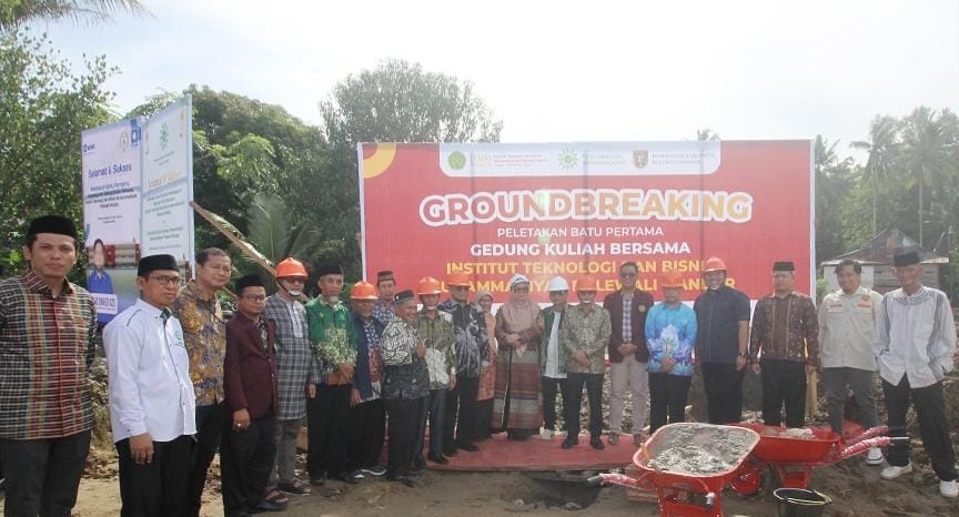 Institut Teknologi dan Bisnis Muhammadiyah (ITBM) Polewali Mandar baru saja menggelar groundbreaking (peletakan batu pertama) pembangunan Gedung Kuliah Bersama, pada Jumat (18/4/2025). Pembangunan ini berlokasi di Desa Ugi Baru, Kecamatan Mapilli. Agenda ini juga menjadi momen yang dirangkaikan dengan silaturahmi Syawalan bersama warga Muhammadiyah, tokoh pemerintahan, dan masyarakat sekitar.