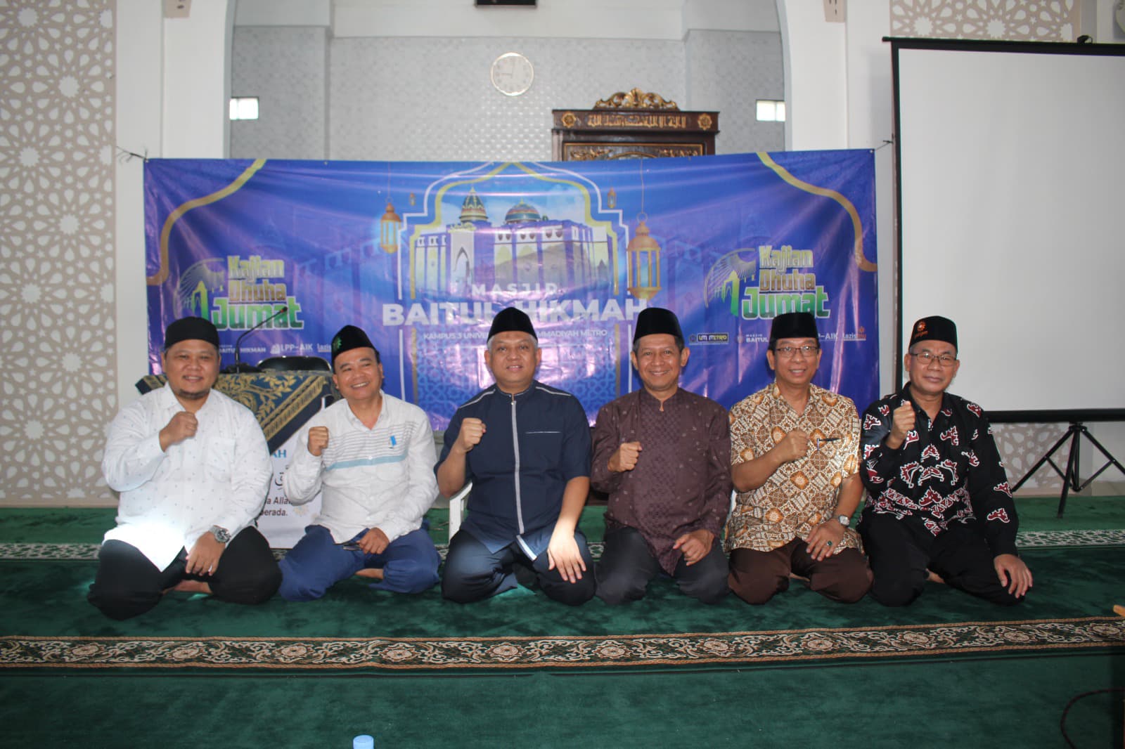 Universitas Muhammadiyah (UM) Metro kembali menggelar Kajian Dhuha Jumat yang menjadi wadah refleksi spiritual bagi sivitas akademika. Bertempat di Masjid Baitul Hikmah Kampus 3, acara ini menghadirkan Sekretaris Majelis Diktilitbang PP Muhammadiyah, Ahmad Muttaqin, sebagai pembicara utama dengan tajuk “Membangun Keunggulan UM Metro Berbasis Risalah Islam Berkemajuan”.