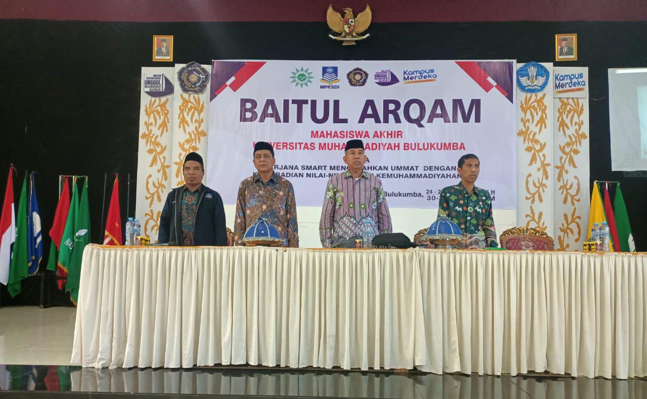 Universitas Muhammadiyah (UM) Bulukumba menggelar Baitul Arqam Mahasiswa Akhir (BAMA). Kegiatan ini diadakan untuk seluruh mahasiswa tingkat akhir sebagai bagian dari upaya untuk memperkuat pemahaman mereka terhadap nilai-nilai Al Islam dan Kemuhammadiyahan (AIK).