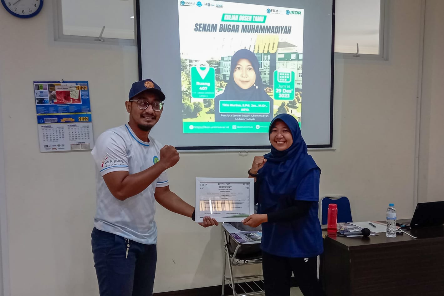 Program Studi Ilmu Keolahragaan (IKOR) Fakultas Kesehatan Masyarakat (FKM) Universitas Muhammadiyah Semarang (UNIMUS) menyelenggarakan kuliah dosen tamu khusus dengan tema “Senam Bugar Muhammadiyah (SEGARMU) sebagai Alternatif Aktivitas Jasmani yang Menyehatkan dan Menggembirakan.” Acara berlangsung pada Jum’at, 29 Desember 2023, di Ruang 407 Gedung Labkes UNIMUS Lantai 4.