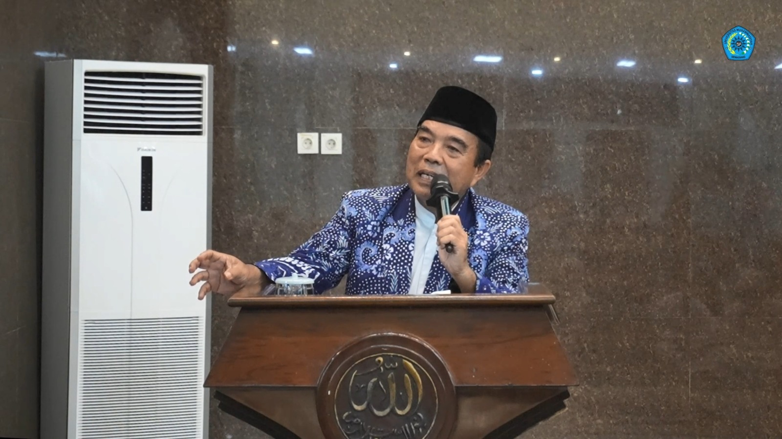 Semarang – Rektor Universitas Muhammadiyah Semarang (UNIMUS) Prof. Dr. Masrukhi, M.Pd menyampaikan kultum di Masjid At-Taqwa Muhammadiyah Jawa Tengah, kompleks UNIMUS pada Senin (3/3/2025). Dalam kesempatan tersebut, beliau bertindak sebagai imam salat Isya, tarawih, dan witir serta mengajak jamaah untuk mensyukuri capaian prestasi UNIMUS yang baru saja meraih akreditasi institusi Unggul dari Badan Akreditasi Nasional Perguruan Tinggi (BAN-PT). Selain itu, sebanyak 21 program studi di UNIMUS juga telah terakreditasi Unggul. Prof. Masrukhi menyoroti semaraknya bulan Ramadan tidak hanya dirasakan di Indonesia, namun juga di berbagai belahan dunia. Pihaknya membagikan pengalaman saat menjadi bagian dari delegasi Pimpinan Pusat Muhammadiyah dalam kunjungan ke Belanda, Belgia, dan Perancis, dimana semangat Ramadan begitu terasa di masjid-masjid Eropa. Salah satu pengalaman berkesan yang dibagikan adalah saat beliau melaksanakan salat Ashar di Masjid Fatih, Amsterdam, Belanda. Masjid tersebut sebelumnya merupakan sebuah gereja yang dibangun pada tahun 1854. Namun, seiring waktu, gereja tersebut kosong tanpa jamaah dan akhirnya dibeli oleh komunitas Muslim Turki pada tahun 1981 untuk diubah menjadi masjid.