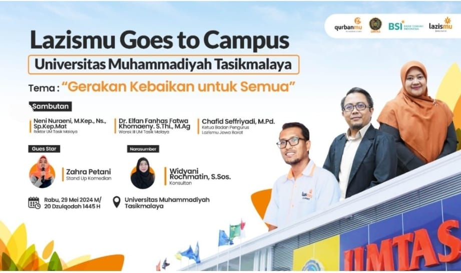Universitas Muhammadiyah Tasikmalaya (UMTAS) bersama Lazismu menyelenggarakan acara Lazismu Goes To Campus bertajuk “Gerakan Kebaikan untuk Semua” yang dilaksanakan di Universitas Muhammadiyah Tasikmalaya, Rabu (29/04/2024). Lazismu Goes To Campus merupakan program Lazismu yang bertujuan untuk berfokus pada edukasi tentang zakat dan peran Lazismu dalam menyelesaikan berbagai permasalahan sosial di Indonesia. Program ini memiliki motto yang menginspirasi, “Wujudkan Mimpi, Membangun untuk Negeri.”
