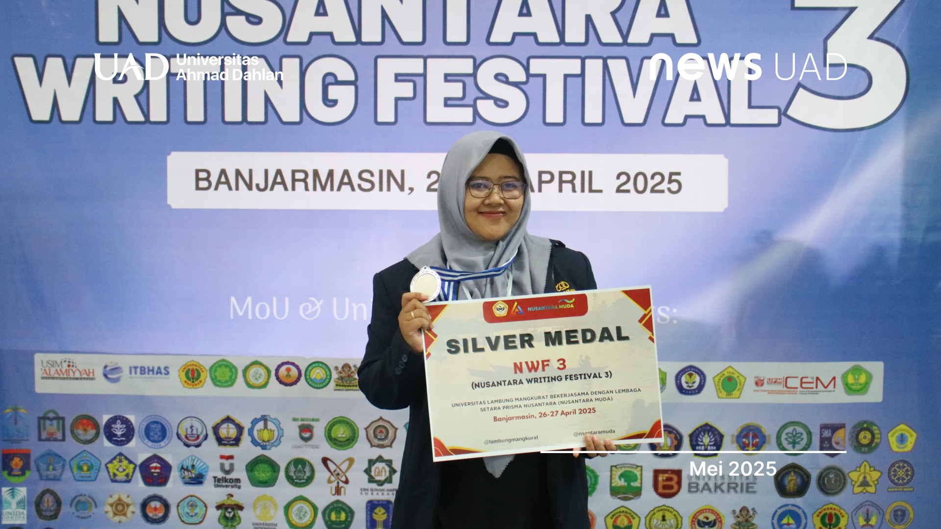 Isah Fitriani, mahasiswi Program Studi Magister Kesehatan Masyarakat (MKM) angkatan ke-10 Universitas Ahmad Dahlan (UAD), kembali menorehkan prestasi membanggakan di tingkat nasional. Ia bersama timnya berhasil berkontribusi aktif dalam ajang Nusantara Writing Festival 3 (NWF 3) yang diselenggarakan oleh Lembaga Prisma Nusantara bekerja sama dengan Universitas Lambung Mangkurat. Kegiatan ini berlangsung pada 26–27 April 2025 di Fakultas Kedokteran Universitas Lambung Mangkurat, Banjarbaru, Kalimantan Selatan.