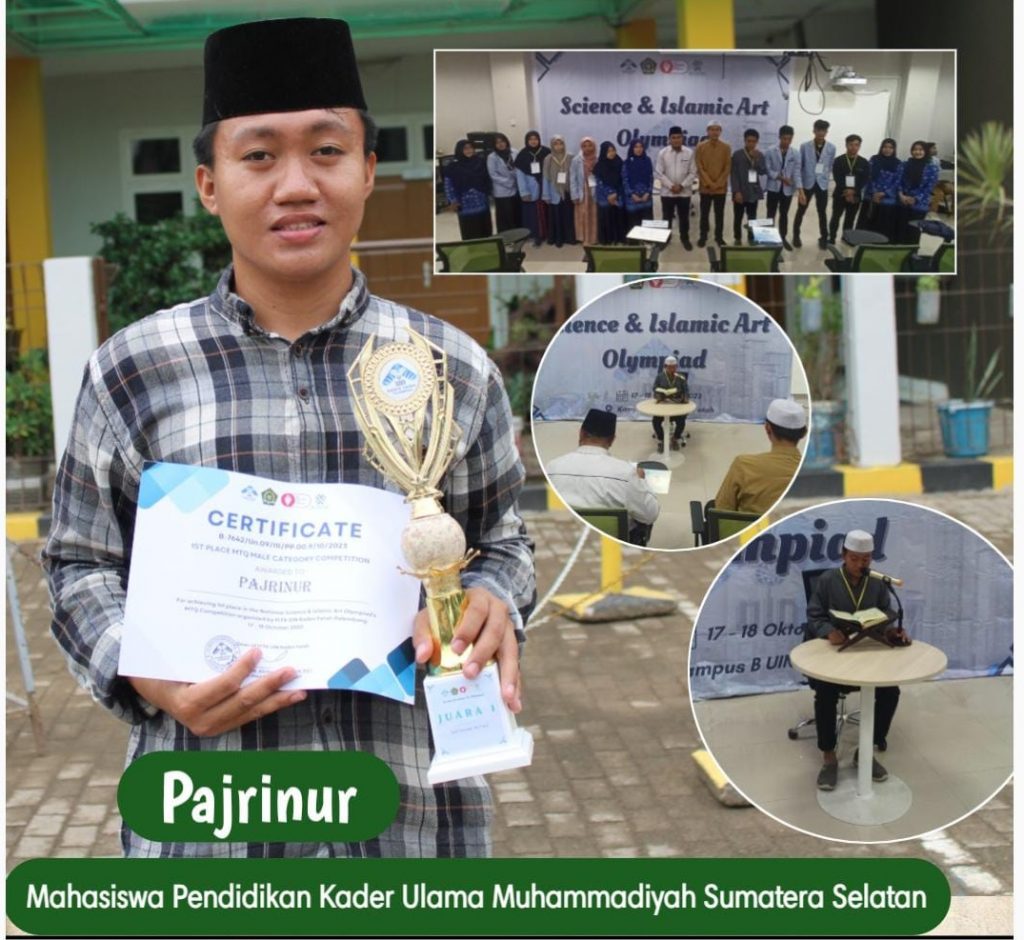 Fajrianur, mahasiswa Mahad Sa’ad Bin Abi Waqosh Universitas Muhammadiyah Palembang (UM Palembang) berhasil meraih juara 1 pada Science & Islamic Art Olympiad MTQ Competition yang diselenggarakan oleh UIN Raden Fatah Palembang, Rabu (25/10/2023).