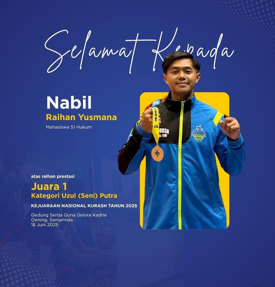 Nabil Raihan Yusman, mahasiswa Fakultas Hukum Universitas Muhammdiyah Kalimantan Timur (UMKT), telah mengharumkan nama daerah dengan meraih prestasi gemilang di Kejuaraan Nasional (Kejurnas) Kurash 2025.