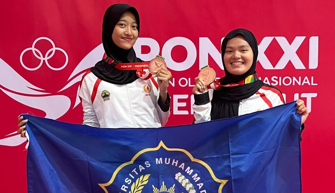 Dua Mahasiswa Universitas Muhammadiyah Surakarta (UMS) berhasil meraih Medali Perunggu pada cabang olahraga Anggar Beregu Foil Putri Pekan Olahraga Nasional (PON) 2024 yang berlangsung di Gedung Serbaguna Harapan Bangsa (SHB) Banda Aceh 11 – 16 September 2024.