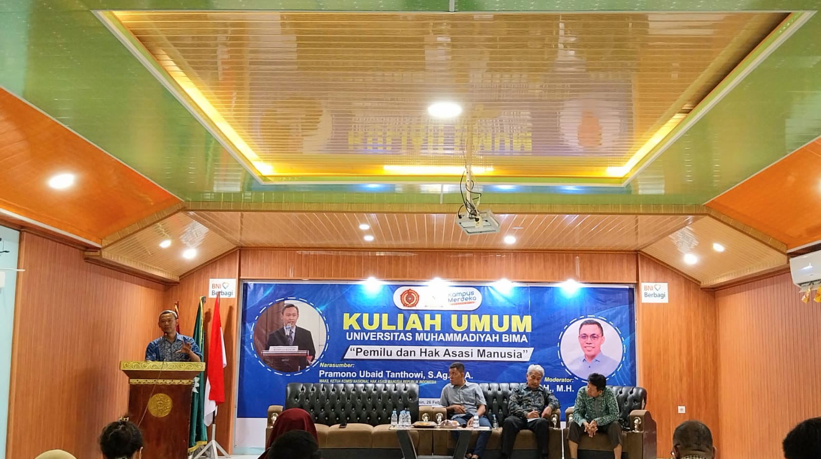 Universitas Muhammadiyah (UM) Bima menyelenggarakan kuliah umum yang mengangkat isu penting tentang Pemilihan Umum (Pemilu) dan Hak Asasi Manusia (HAM). Acara Kuliah Umum menghadirkan Wakil Ketua Komisi Nasional Hak Asasi Manusia (Komnas HAM) Republik Indonesia, Pramono Ubaid Tanthowi, SAg MA sebagai pembicara utama (26/02/2024).