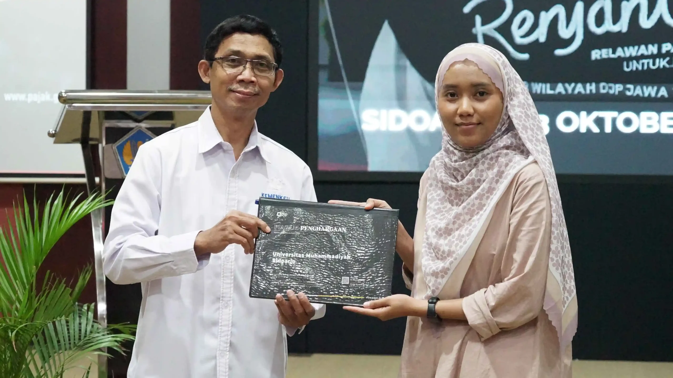 Kepala Tax Center Umsida, Sarwenda Biduri, menyampaikan bahwa penghargaan ini menjadi bukti nyata peran mahasiswa Umsida dalam mendukung edukasi perpajakan nasional.