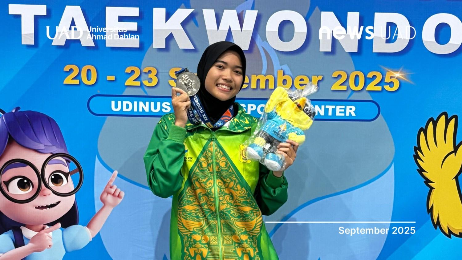 Nama Universitas Ahmad Dahlan (UAD) kembali terukir di ajang olahraga nasional. Nafisa Anindya, mahasiswa Program Studi Gizi UAD, sukses meraih medali perak pada nomor Kyorugi Under-49 Putri cabang taekwondo di Pekan Olahraga Mahasiswa Nasional (POMNAS) XIX 2025.