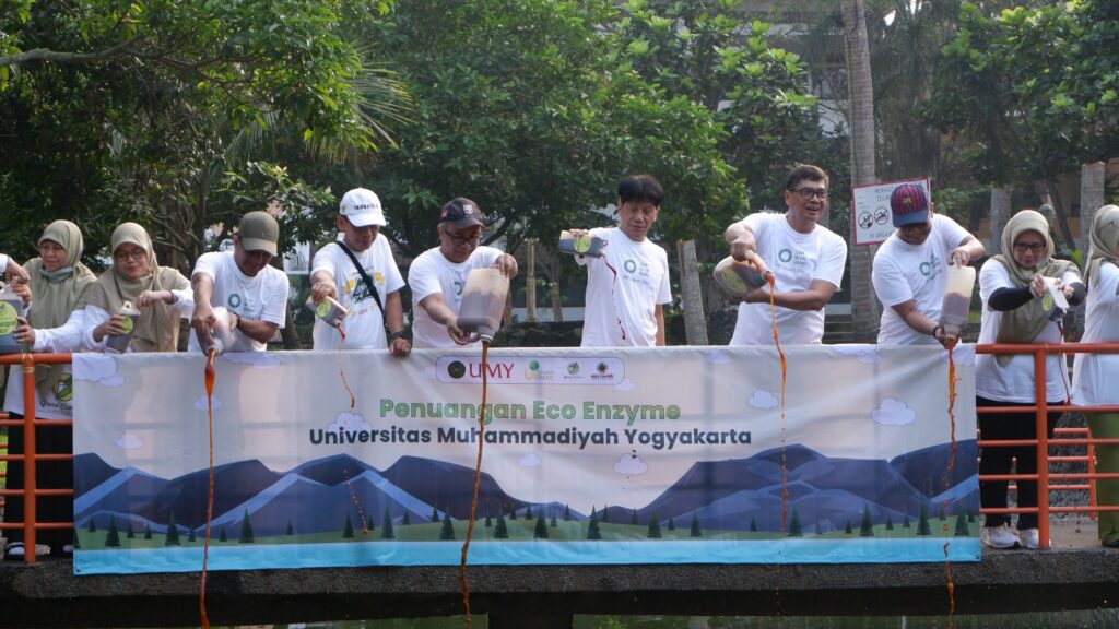 UMY berkontribusi dalam penuangan eco enzyme dengan meyumbangkan 100 liter dari total penuangan yang dilakukan. Sebelumnya, UMY juga memproduksi eco enzyme bersama mahasiswa dan dosen untuk digunakan di danau kampus.