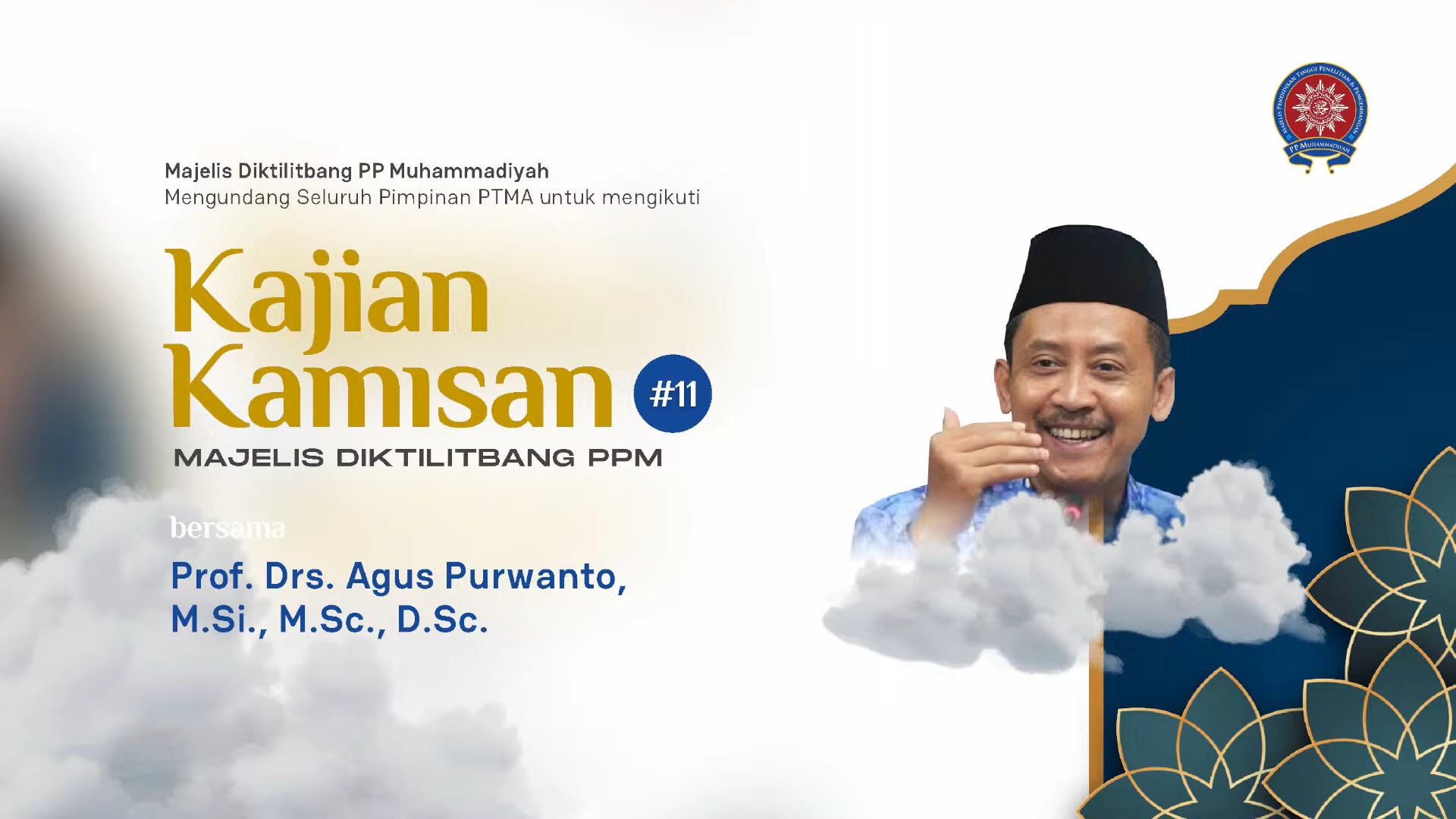 Pengajian Kamisan diikuti oleh pimpinan Perguruan Tinggi Muhammadiyah dan ‘Aisyiyah (PTMA) se-Indonesia. Hadir selaku narasumber yakni Prof Drs Agus Purwanto MSi MSc Dsc. Guru Besar Fisika Teori di Institut Teknologi Sepuluh November sekaligus anggota aktif Majelis Tarjih dan Tajdid PP Muhammadiyah.
