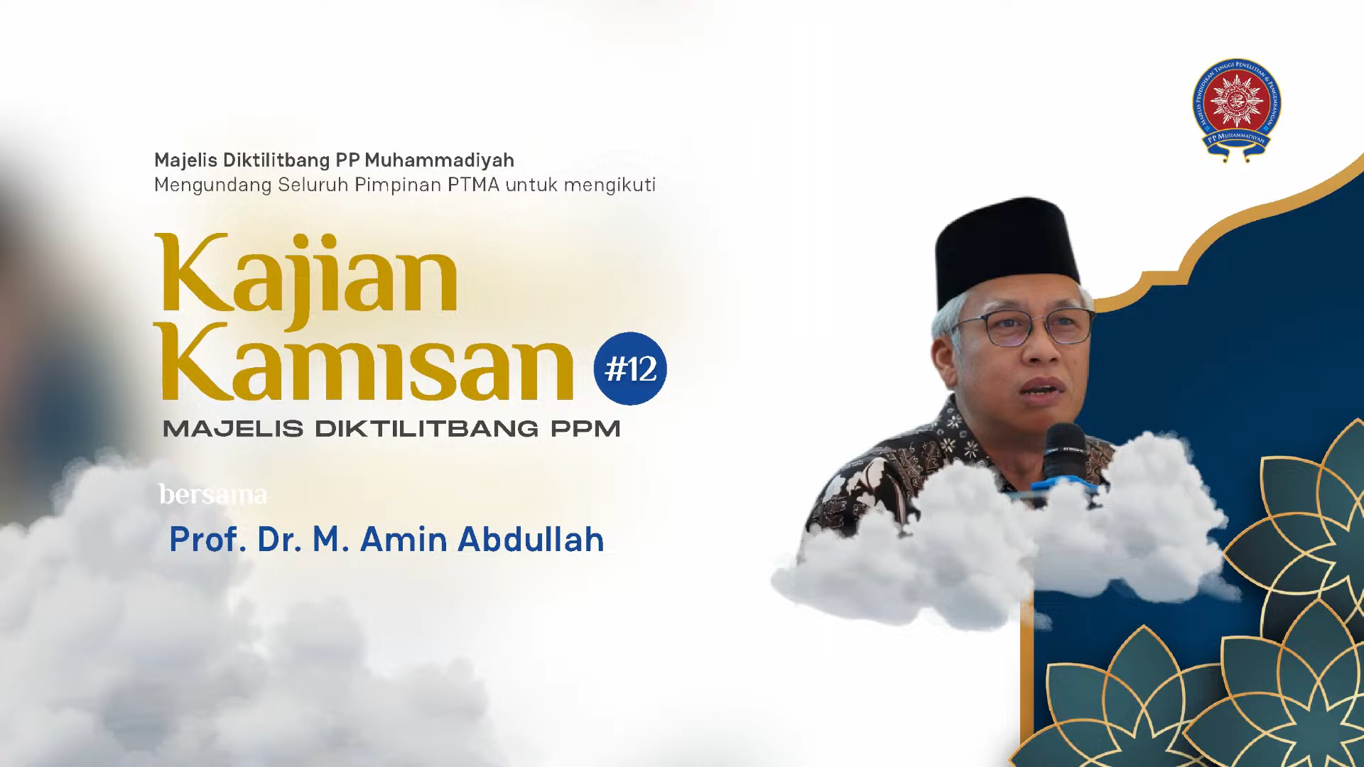 Pengajian Kamisan diikuti oleh pimpinan Perguruan Tinggi Muhammadiyah dan ‘Aisyiyah (PTMA) se-Indonesia. Hadir selaku narasumber yakni Prof. Dr. M. Amin Abdullah, Dewan Pakar Majelis Pembinaan Kader dan Sumber Daya Insani (MPKSDI) Pimpinan Pusat (PP) Muhammadiyah.