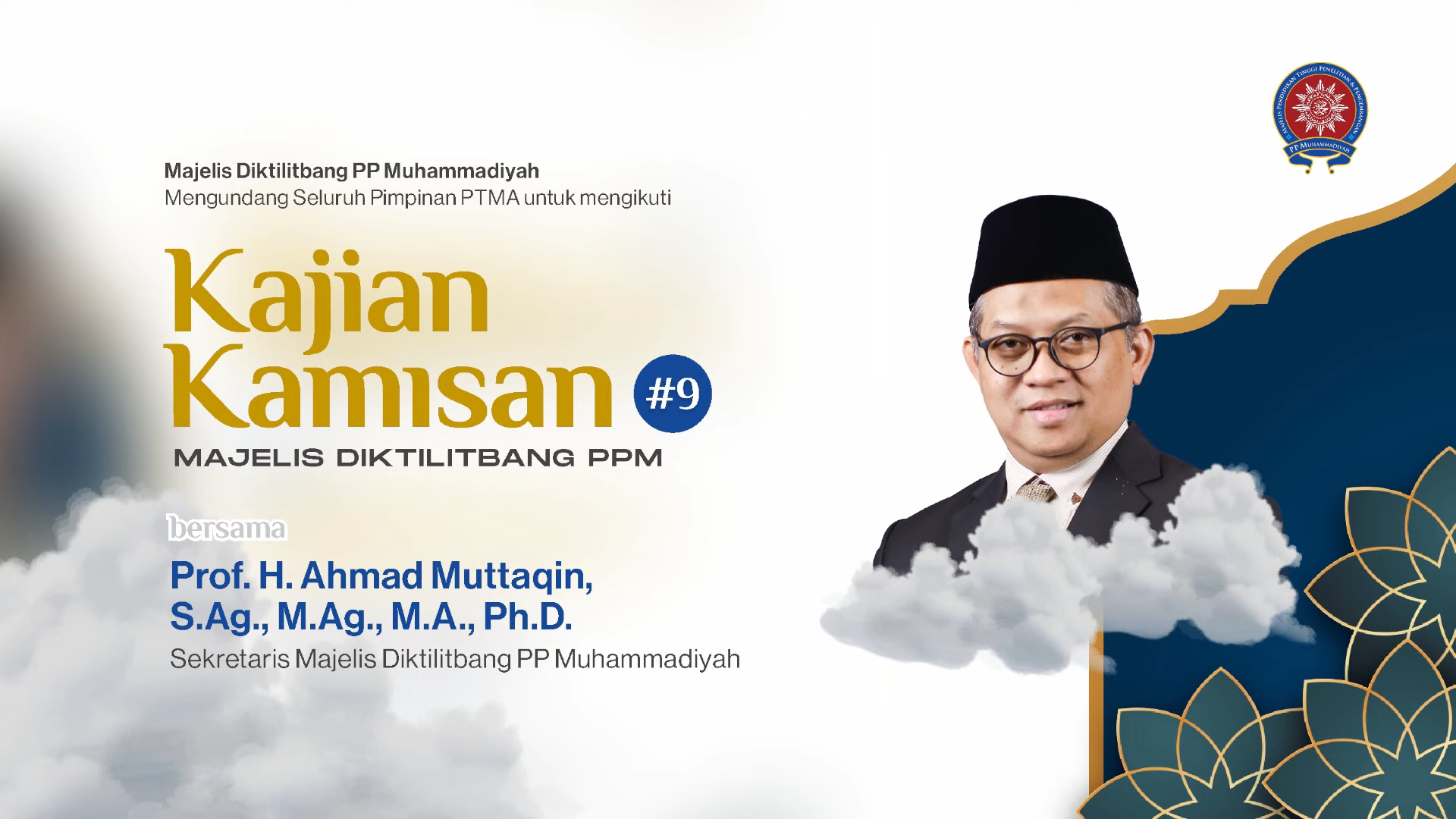 Majelis Pendidikan Tinggi Penelitian dan Pengembangan (Diktilitbang) PP Muhammadiyah kembali menggelar kegiatan rutin yakni Pengajian Kamisan. Dalam Pengajian Kamisan ke-9 kali ini mengusung tema “Studi Agama Terapan (Applied Religious Studies)”. Pengajian berlangsung pada Kamis, (27/6/2024) secara daring lewat Zoom Meeting dan bisa disimak kembali di kanal YouTube Majelis Diktilitbang PP Muhammadiyah.