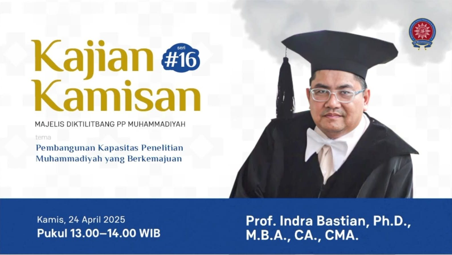 Hadir sebagai narasumber, Prof Indra Bastian, PhD MBA CA CMA Guru Besar Fakultas Ekonomika dan Bisnis Universitas Gadjah Mada (UGM). Dalam paparannya, Prof Indra mengajak seluruh elemen Muhammadiyah untuk membangun ekosistem riset yang kolaboratif, strategis, dan berbasis nilai keislaman.