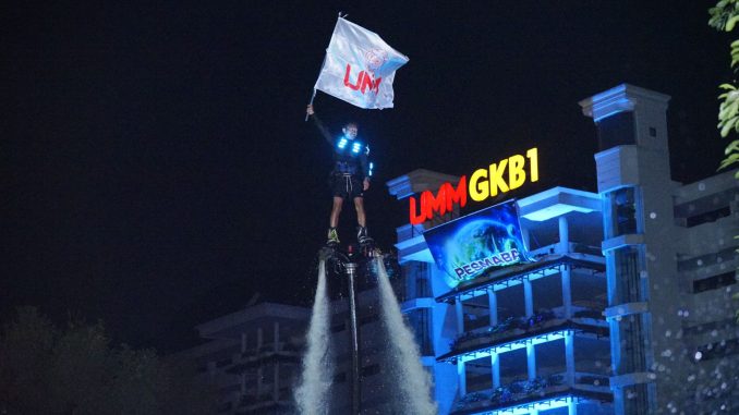 Atraksi atlet flying board menampilkan manuver-manuver di atas air dan melakukan salto yang membuat takjub ribuan penonton yang ikut hadir menyaksikan di pinggir danau UMM. Selain itu, ada enam bendera yang dikibarkan oleh para mahasiswa melalui jalur flying fox. Bendera tersebut terdiri dari bendera Selamat Datang Gen 24 UMM, Pionir Digital, Pelestari Bumi, Stop Genosida Palestina, Hapuskan Rasisme Global, dan Bersama Wujudkan Kedamaian. “Tiap bendera memiliki maknanya masing-masing dan menjadi spirit berkontribusi Kampus Putih dan mahasiswa. Maba gen 24 UMM diharapkan mampu menjadi pionir digital sekaligus sukses melestarikan bumi. Mereka harus bisa menjadi pemimpin yang mencegah rasisme global, menghentikan genosida di Palestina, dan bersama mewujudkan kedamaian,” tambah Dr M Isnaini MPd selaku kepala Humas UMM.