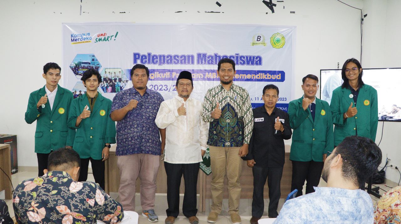 Rektor Universitas Muhammadiyah Riau (Umri) Dr H Saidul Amin resmi melepas 223 mahasiswa untuk mengikuti kegiatan Merdeka Belajar Kampus Merdeka (MBKM) pada Jumat (11/8/2023). Pelepasan yang dilaksanakan di Gedung AR Sutan Mansur, Kampus Utama Umri, Jalan Tuanku Tambusai Ujung, Pekanbaru.