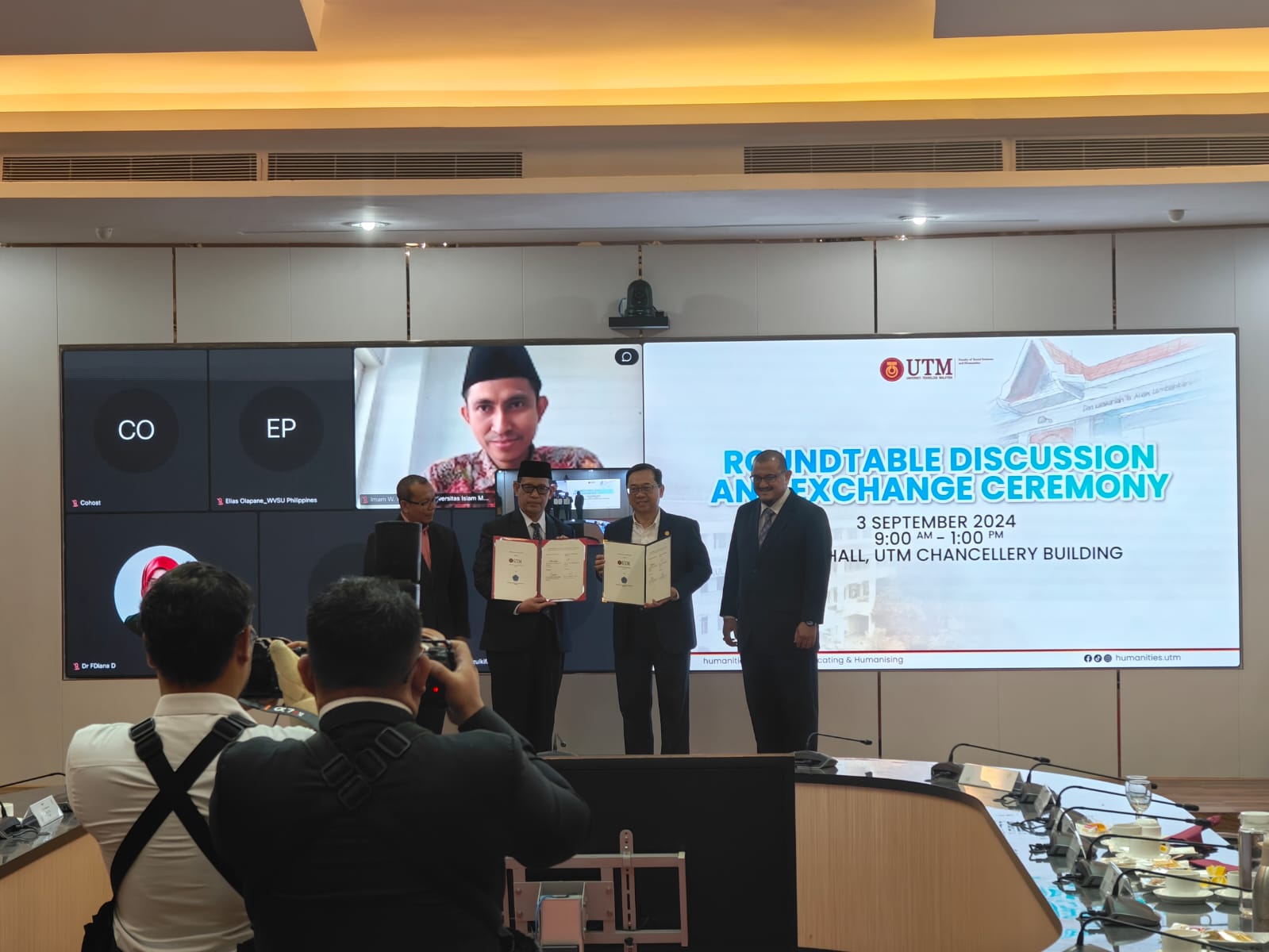 Selain sesi sharing session, ada pula sesi penandatangan Nota Kesepahaman (MoU) dan Perjanjian Kerja Sama (MoA), serta dis kusi kerja sama penelitian untuk tahun 2024-2025.
