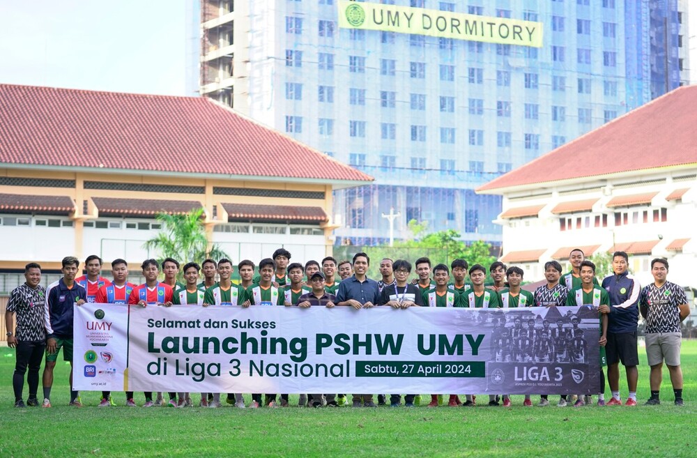 Persatuan Sepak Bola Hizbul Wathan Universitas Muhammadiyah Yogyakarta (PSHW UMY) resmi memperkenalkan tim yang akan bermain di Liga 3 Nasional. Peresmian dilakukan pada Sabtu (27-4-2024) yang bertempat di Lapangan Sepakbola UMY. Persemian ini dihadiri langsung serta dibuka oleh Rektor UMY, Prof Gunawan Budiyanto.