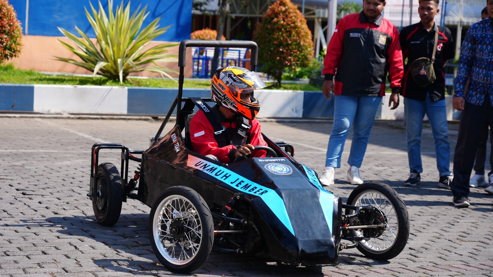 Program Studi Teknik Mesin Fakultas Teknik Universitas Muhammadiyah Jember (Unmuh Jember) gelar Grand Launching Mobil Listrik Bharata di Unmuh Jember, pada Sabtu (17/06/2023). Mobil listrik yang diproduksi oleh sebelas mahasiswa Prodi Teknik Mesin (Kyra Team) akhirnya diresmikan setelah kurang lebih delapan bulan produksi sejak tahap perencanaan dan desain.