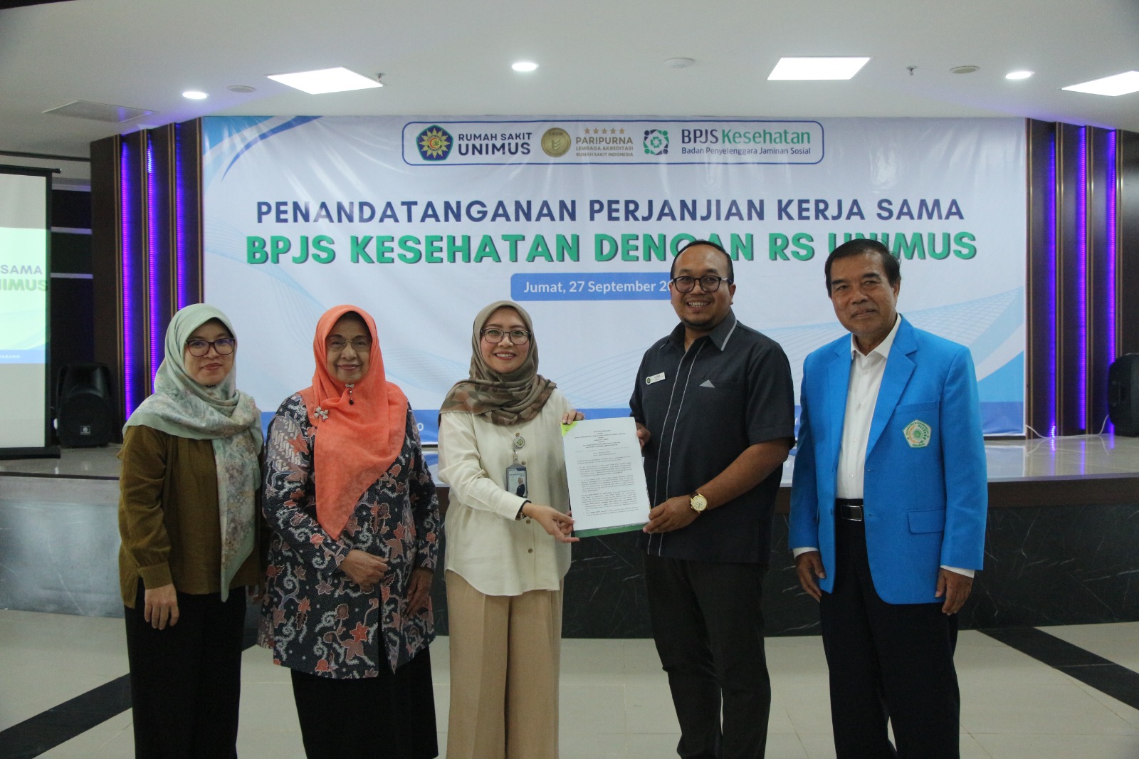 Semarang, 27 September 2024 – BPJS Kesehatan Kota Semarang secara resmi menjalin kerja sama dengan Rumah Sakit Universitas Muhammadiyah Semarang (RS UNIMUS) dalam rangka peningkatan pelayanan Jaminan Kesehatan Nasional (JKN). Acara penyerahan komitmen kerja sama ini diselenggarakan di RS UNIMUS dan dihadiri oleh berbagai pihak penting yang terlibat dalam pengembangan pelayanan kesehatan di Kota Semarang. Turut hadir, Kepala BPJS Kesehatan Kota Semarang, dr Fitria Nurlaila Pulukadang, MIKom, yang menyampaikan pentingnya sinergi antara BPJS Kesehatan dan fasilitas kesehatan (Faskes) untuk memberikan pelayanan terbaik bagi masyarakat. Turut hadir, Rektor Universitas Muhammadiyah Semarang, Prof Dr H Masrukhi MPd bersama jajaran wakil rektor dan segenap pimpinan universitas yang mendukung penuh terjalinnya kerja sama ini.