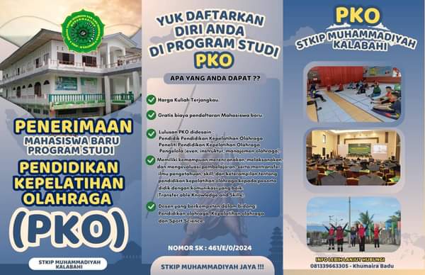 STKIP Muhammadiyah Kalabahi telah siap menerima mahasiswa baru untuk program studi Pendidikan Kepelatihan Olahraga (PKO) pada tahun akademik 2024/2025.
