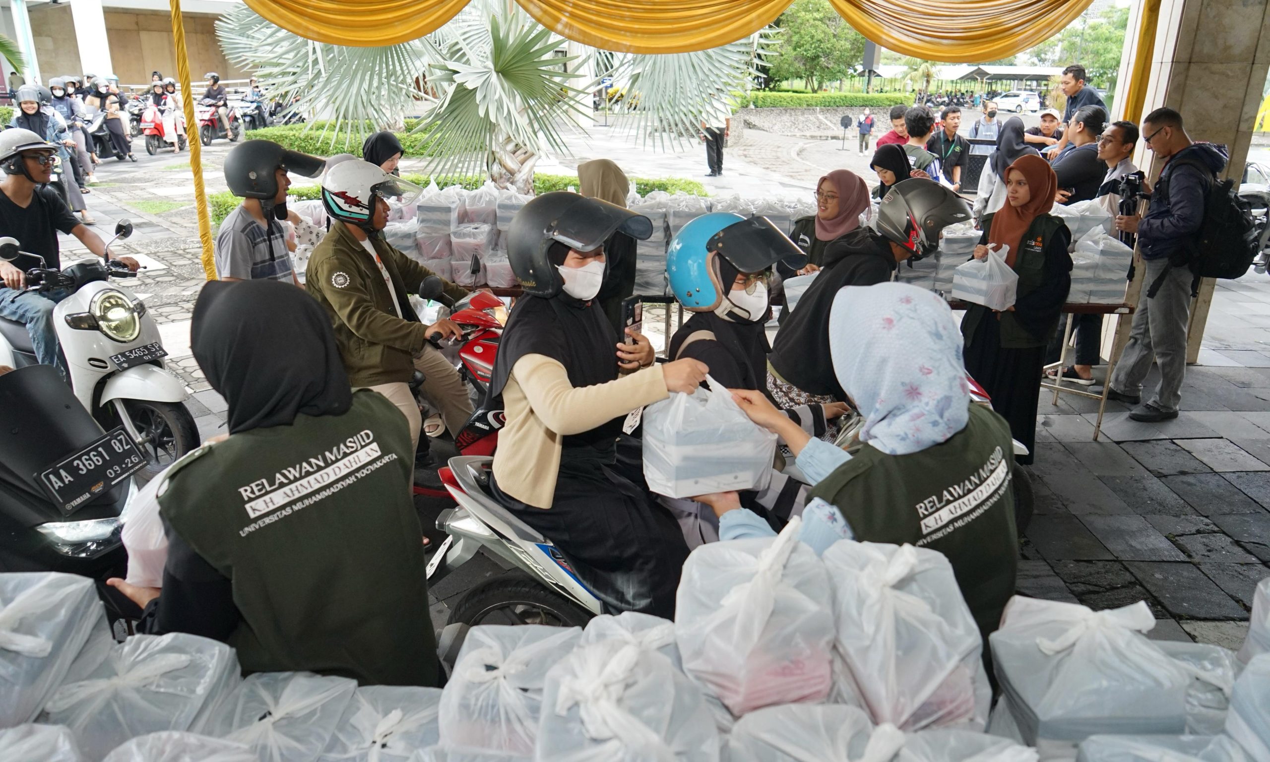 Universitas Muhammadiyah Yogyakarta (UMY) kembali menebar kebahagiaan dengan membagikan 5000 takjil untuk mahasiswa selama bulan Ramadan. Pembagian Takjil dilakukan secara drive thru di selasar gedung AR Fakhruddin A, Kampus terpadu UMY dan di Masjid K.H Ahmad Dahlan UMY.