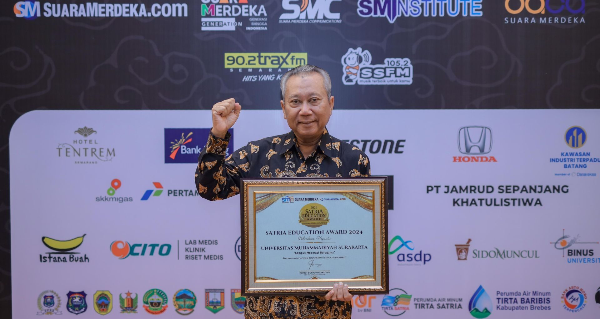 Universitas Muhammadiyah Surakarta (UMS) kembali membuktikan komitmennya sebagai kampus yang unggul dan mencerahkan. UMS baru saja meraih penghargaan Satria Education Award 2024 dalam kategori Kampus Moderasi Beragama. Penghargaan ini diterima langsung oleh Rektor UMS, Sofyan Anif yang digelar di Hotel Tentrem Semarang pada Jumat, 6 Oktober 2024. Penghargaan ini diberikan oleh Suara Merdeka sebagai bentuk apresiasi terhadap peran UMS dalam menerapkan nilai-nilai moderasi dalam kehidupan beragama dan berbangsa.