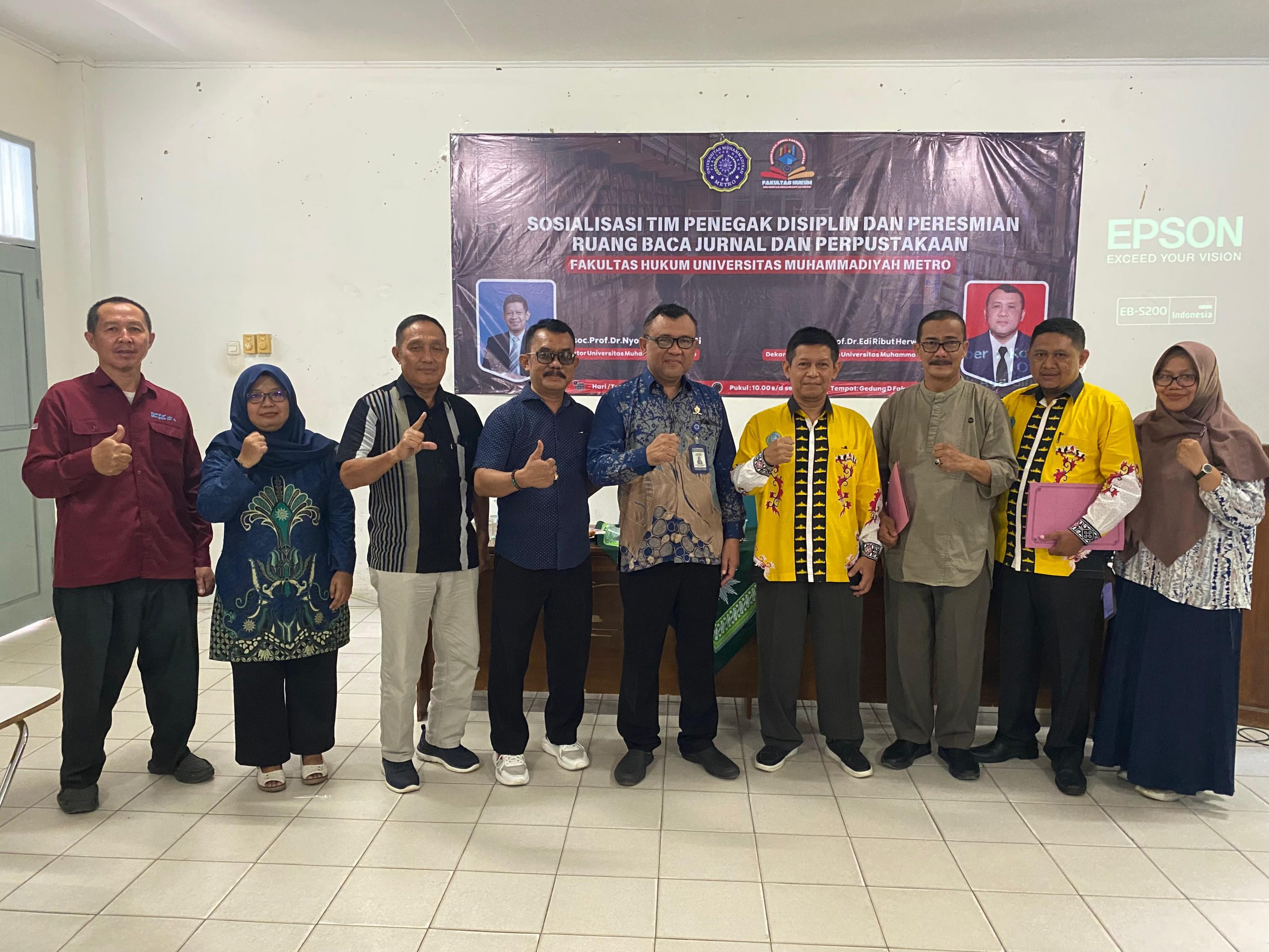 Mengingat pentingnya menegakkan tata tertib dan kualitas akademik di lingkungan kampus. Universitas Muhammadiyah (UM) Metro Lampung lewat Fakultas Hukum (FH) mengadakan sosialisasi hadirnya Tim Penegak Disiplin. Kegiatan ini sekaligus peresmian Ruang Baca Jurnal dan Perpustakaan baru di Ruang Rapat Fakultas Hukum. Ruang Baca Jurnal dan Perpustakaan itu diresmikan secara langsung oleh Rektor UM Metro, Rabu, (15/5/2024).