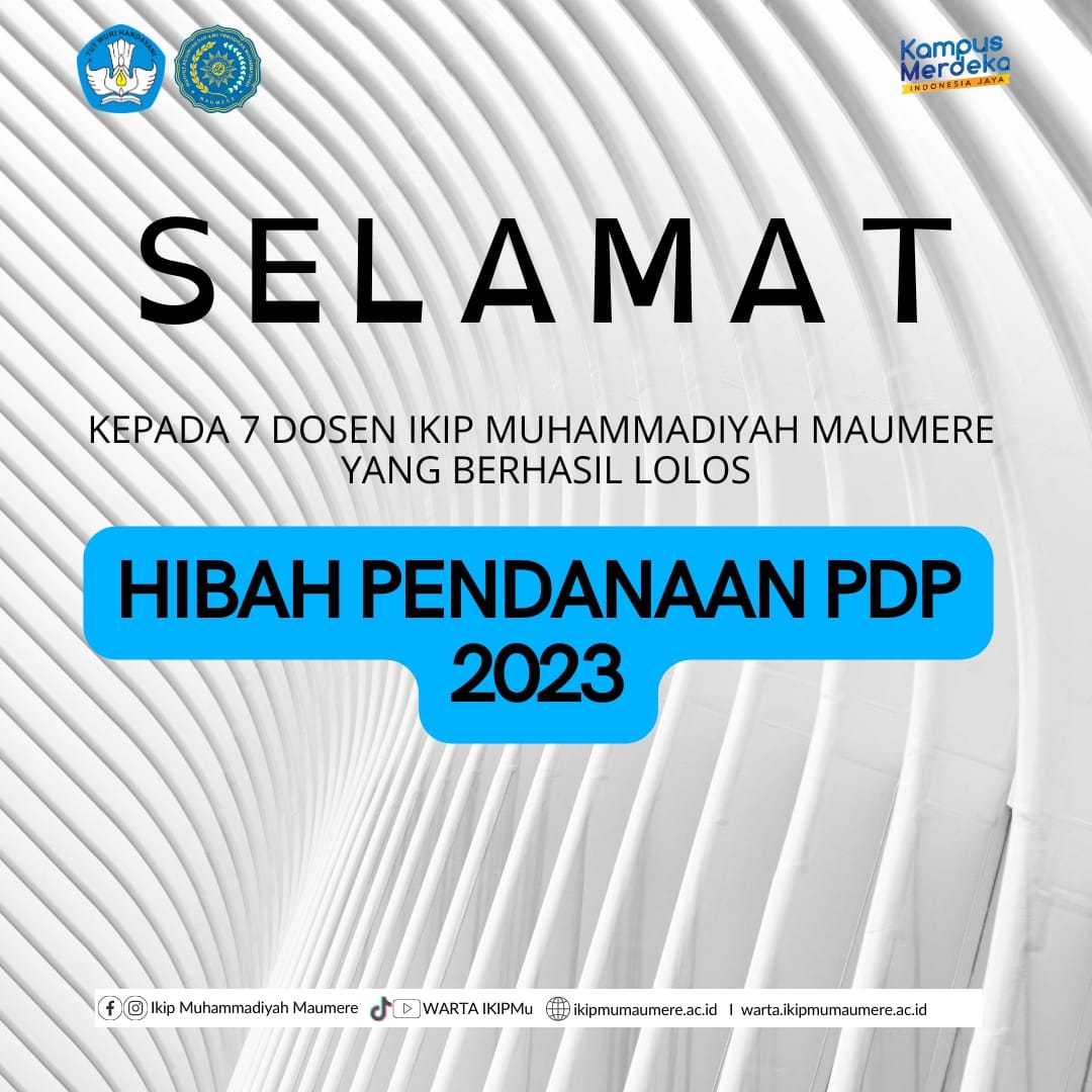 Tujuh dosen dari Institut Keguruan dan Ilmu Pendidikan Muhammadiyah (IKIPMU) Maumere telah berhasil lolos dalam seleksi pendanaan Hibah Penelitian Dosen Pemula (PDP) 2023. Berdasarkan hasil seleksi PDP yang dilakukan melalui laman BIMA dosen pengusul (5/5/23) memberi hasil yang baik untuk beberapa dosen di IKIPMU Maumere. Tujuh proposal pendanaan yang lolos merupakan bagian kecil dari 17 proposal yang di usulkan.