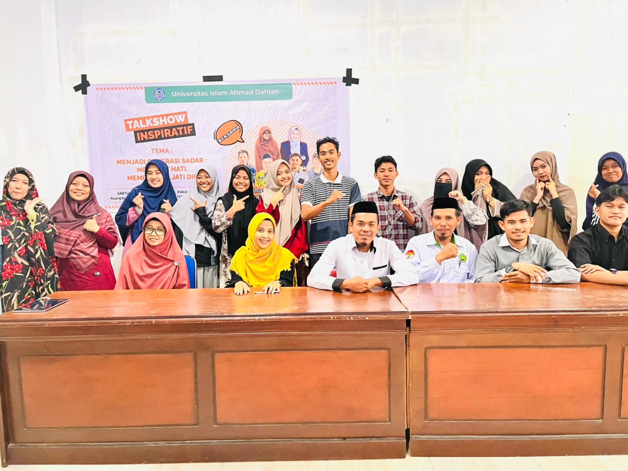 Universitas Islam Ahmad Dahlan (UIAD) Sinjai kembali meneguhkan komitmennya dalam menghadirkan pendidikan yang tidak hanya berorientasi pada kompetensi akademik, tetapi juga menyentuh pembentukan karakter dan kesehatan batin mahasiswa. Hal ini diwujudkan melalui pelaksanaan Talk Show Inspiratif bertajuk “Menjadi Generasi Sadar: Merawat Hati, Memelihara Jati Diri” yang digelar oleh mahasiswa Program Magister Bimbingan dan Penyuluhan Islam (BPI) Program Pascasarjana UIAD Sinjai.