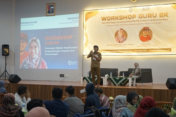 Universitas Muhammadiyah (UM) Bandung menyelenggarakan workshop bagi para guru Bimbingan dan Konseling (BK) SMA/SMK/MA se-Bandung Raya. Workshop ini berlangsung di Auditorium KH Ahmad Dahlan UM Bandung, pada Selasa (30-4-2024). Tema workshop tersebut yaitu “Penerapan Disiplin Positif dalam Pengembangan Program Anti Perundungan”. Ada dua narasumber dalam workshop ini yakni pertama, Founder Peace Generation Irfan Amalee. Kedua, psikolog dan dosen UM Bandung Rika Dwi Agustiningsih.
