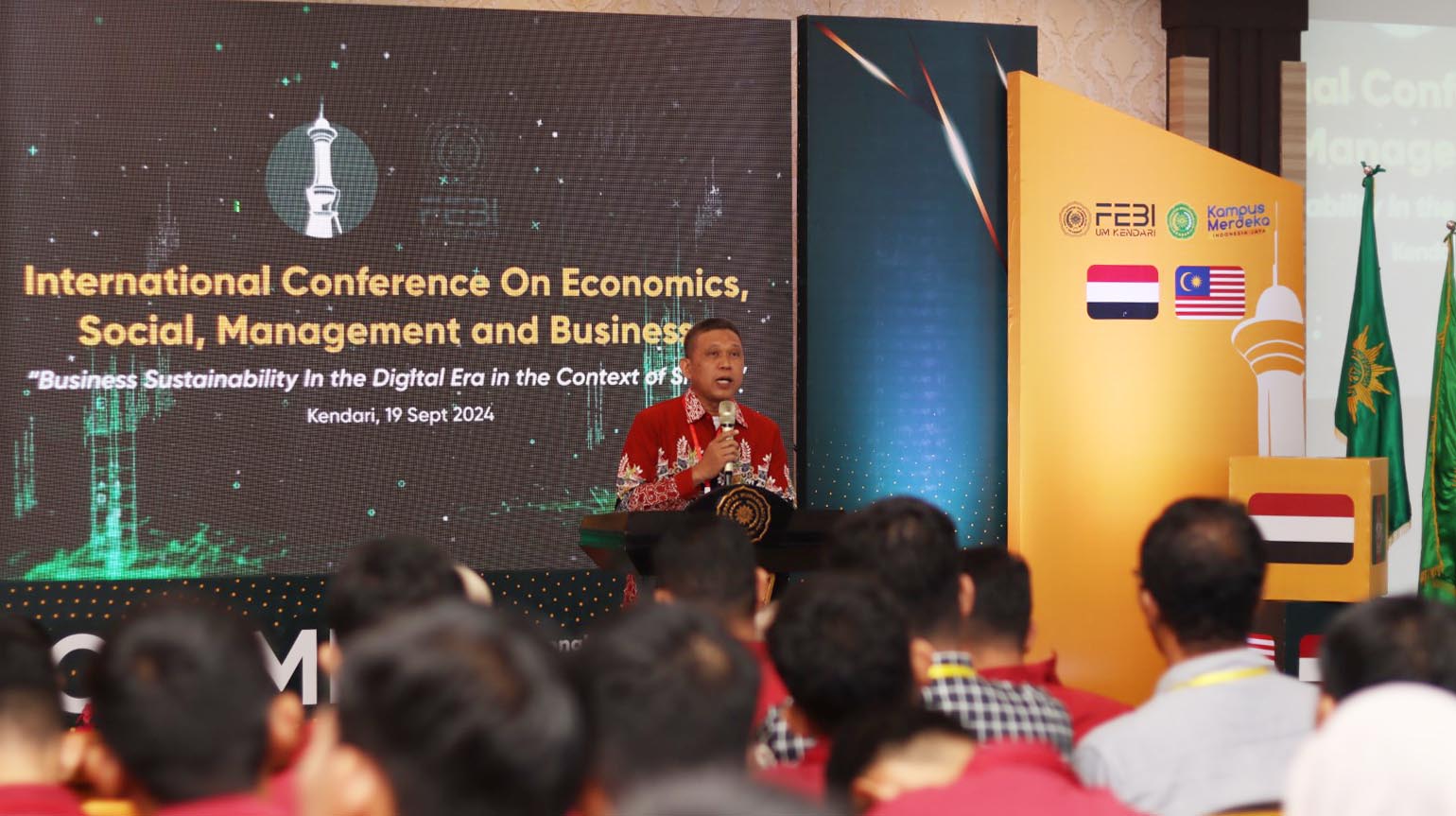 Fakultas Ekonomi dan Bisnis Islam (FEBI) Universitas Muhammadiyah Kendari (UM Kendari) menjadi tuan rumah gelaran International Conference On Economics, Social Management, and Business (ICOESMB) yang ketiga pada hari Kamis (19/09/2024). Konferensi yang bertajuk “Keberlanjutan Bisnis di Era Digital dalam Konteks Syariah” ini berlangsung di Aula lantai 4 Gedung E UM Kendari dengan menghadirkan berbagai pembicara internasional dari Mesir, Afghanistan, Yaman, Malaysia, hingga Sulawesi Tenggara.