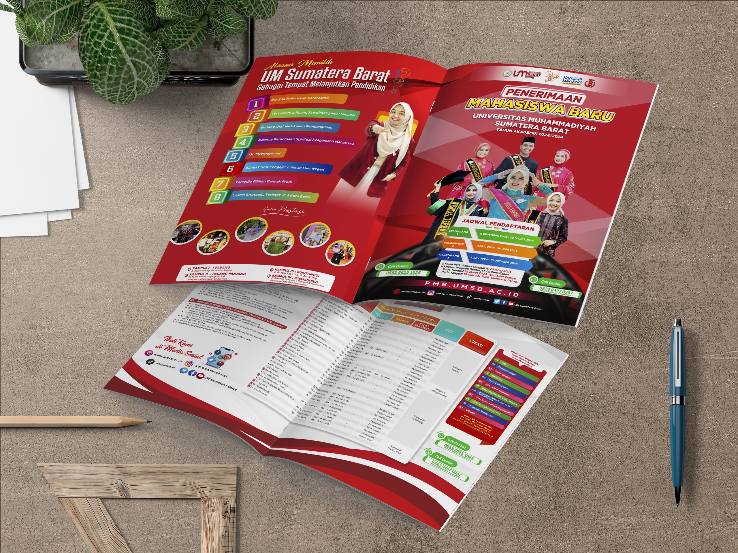 Gelombang pertama penerimaan mahasiswa baru tahun akademik 2024/2025 resmi dibuka Universitas Muhammadiyah Sumatera Barat (UM Sumatera Barat) tepat pada Senin (11/12/2023). Ada hal yang berbeda dalam penerimaan mahasiswa baru tahun ini, yaitu gelombang pendaftaran dibuka untuk tiga gelombang dengan dua jalur pendaftaran, yakni tes dan non tes. Pendaftaran gelombang pertama, dimulai 11 Desember 2023 s/d 30 Maret 2024, gelombang kedua mulai 1 April 2024 s/d 30 Juni 2024, gelombang ketiga berlaku tanggal 1 Juli 2024 s/d 10 Oktober 2024. Seperti disebutkan oleh Rektor UM Sumatera Barat, Dr. Riki Saputra bahwa dibukanya tiga gelombang pendaftaran tahun ini lebih ditujukan untuk memberikan kesempatan yang lebih luas kepada calon mahasiswa. “Mahasiswa dapat menentukan pilihannya untuk bergabung bersama UM Sumatera Barat sebagai kampus swasta terbaik di Sumatera Barat ini,” paparnya.
