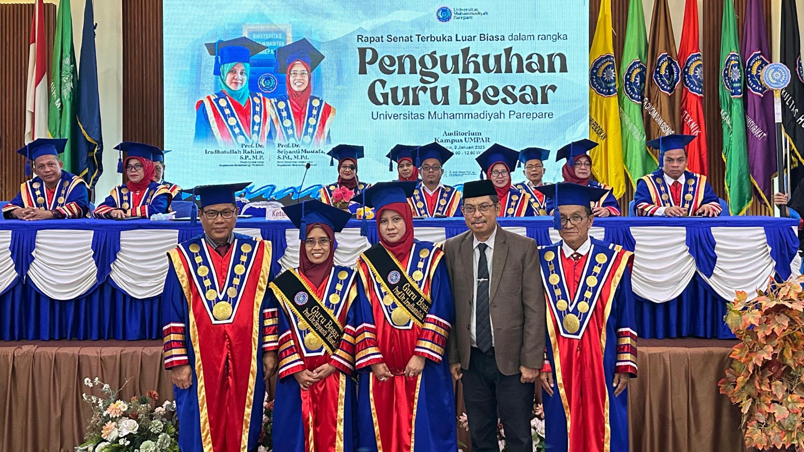 Universitas Muhammadiyah Parepare (Umpar) baru saja meraih pencapaian dengan mengukuhkan dua dosennya sebagai Guru Besar. Dengan penambahan ini, jumlah Profesor di kampus Umpar kini mencapai delapan orang. Pengukuhan tersebut berlangsung khidmat di Auditorium Umpar pada Kamis, 2 Januari 2025, dan disaksikan oleh civitas akademika, tamu undangan, serta kolega dosen lainnya.