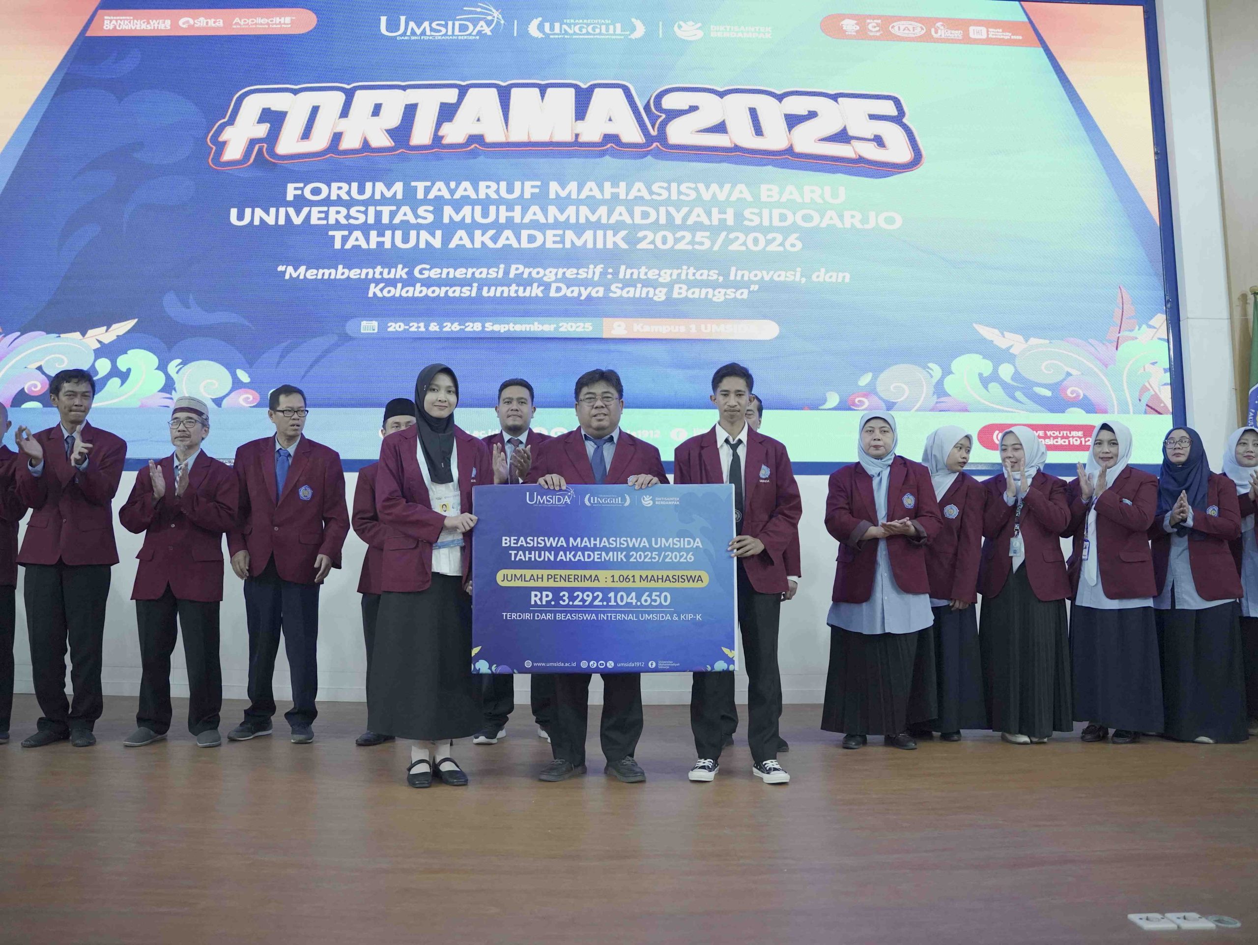 Universitas Muhammadiyah Sidoarjo (Umsida) kembali menegaskan komitmennya dalam memberikan layanan terbaik bagi mahasiswa baru tahun akademik 2025/2026. Tak hanya menyiapkan sarana dan prasarana modern, Umsida juga menyalurkan 1.061 beasiswa kepada mahasiswa baru (Maba) sebagai bentuk dukungan nyata terhadap akses pendidikan tinggi.