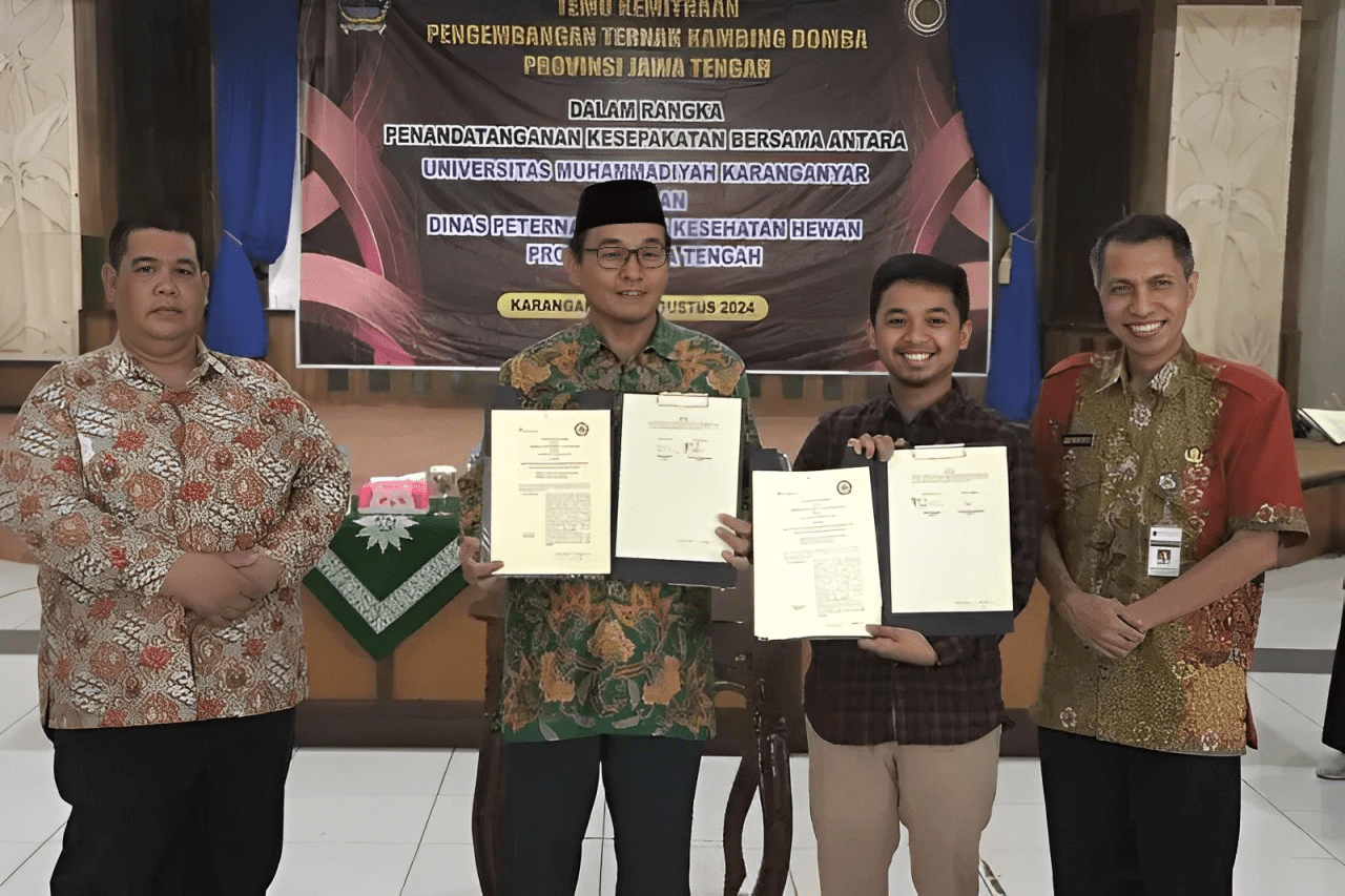Universitas Muhammadiyah Karanganyar (UMUKA) Solo menggandeng dua mitra baru untuk memajukan sektor peternakan dan teknologi digital. Kedua mitra itu adalah Dinas Peternakan dan Kesehatan Hewan (PKH) Provinsi Jawa Tengah (Jateng) dan CV Edukarya Gemilang Jaya. Penandatangan kesepakatan berlangsung dalam agenda “Temu Kemitraan Pengembangan Ternak Kambing Domba Provinsi Jawa Tengah” di Kampus UMUKA Solo. Jumat, (2-8-2024).